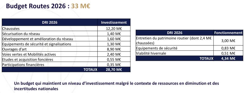 En 2026, le budget routes du Département s’élèvera à 33 millions d’euros.