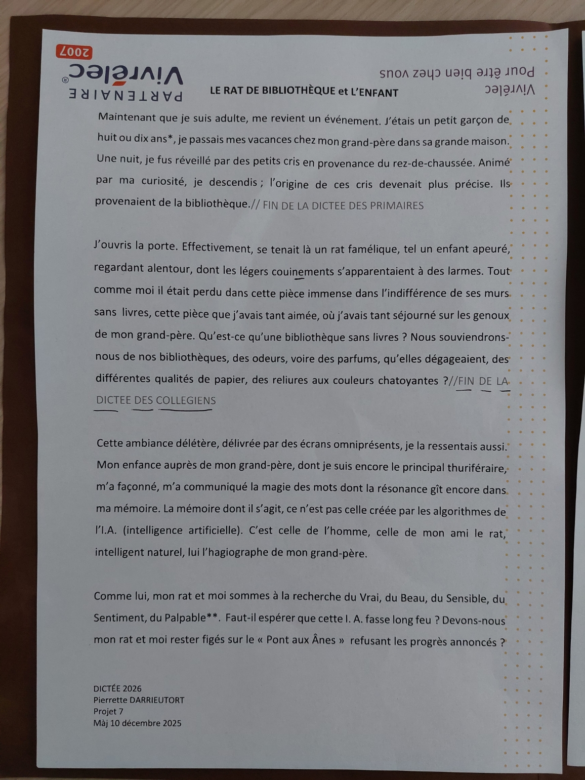 Pour la quatorzième année consécutive, le Rotary International organisait cette dictée solidaire, dont l’objectif premier est de sensibiliser à la lutte contre l’illettrisme et de soutenir la réussite scolaire, dans un esprit de partage et de convivialité.