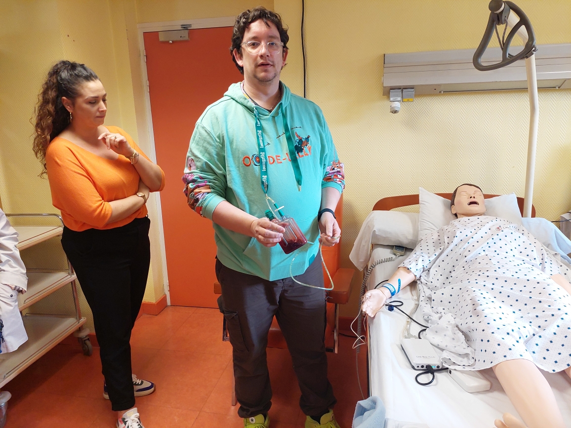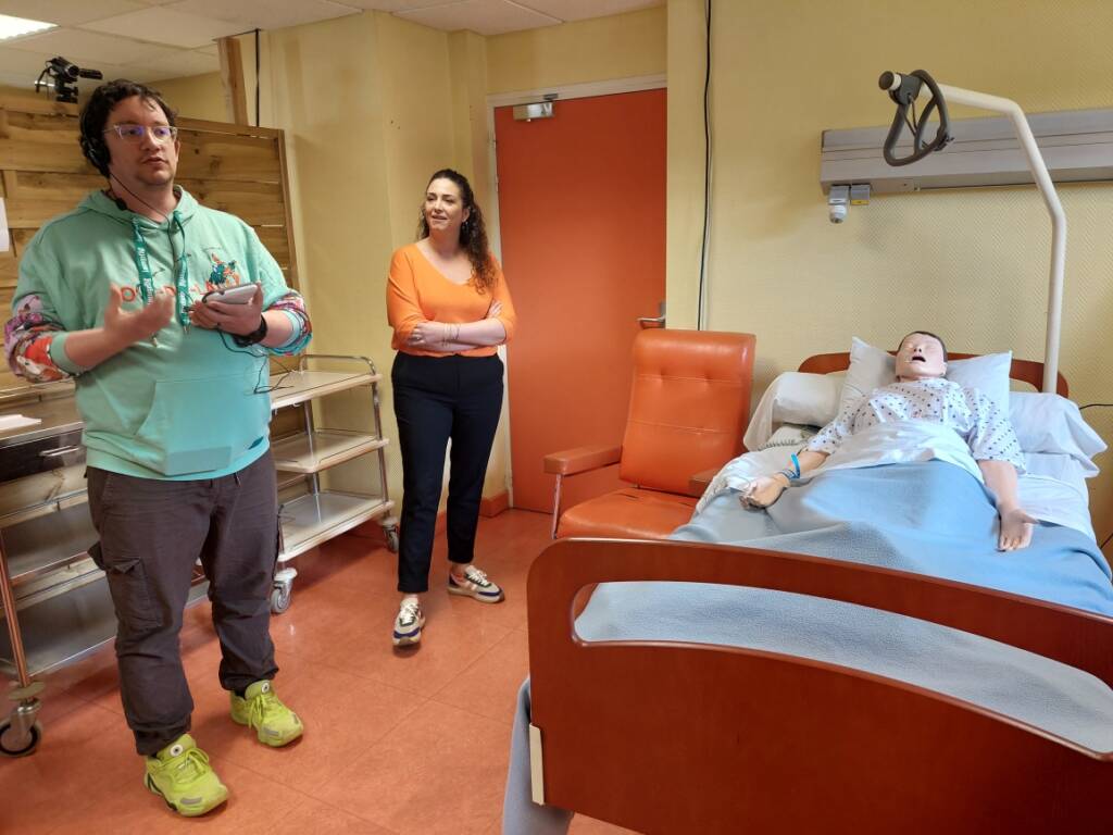 La patiente est allongée sur son lit d’hôpital. Soudain, son coeur s’emballe, une alarme se déclenche. Les élèves infirmiers de l’IFSI (institut de formation en soins infirmiers) doivent immédiatement réagir et prodiguer les bons gestes.