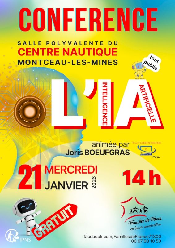 Dans cette dynamique, nous avons le plaisir de vous annoncer une conférence sur l’intelligence artificielle, ses enjeux et ses impacts sur notre quotidien, qui se tiendra le mercredi 21 janvier à 14 h, salle polyvalente du Centre nautique de Montceau.
