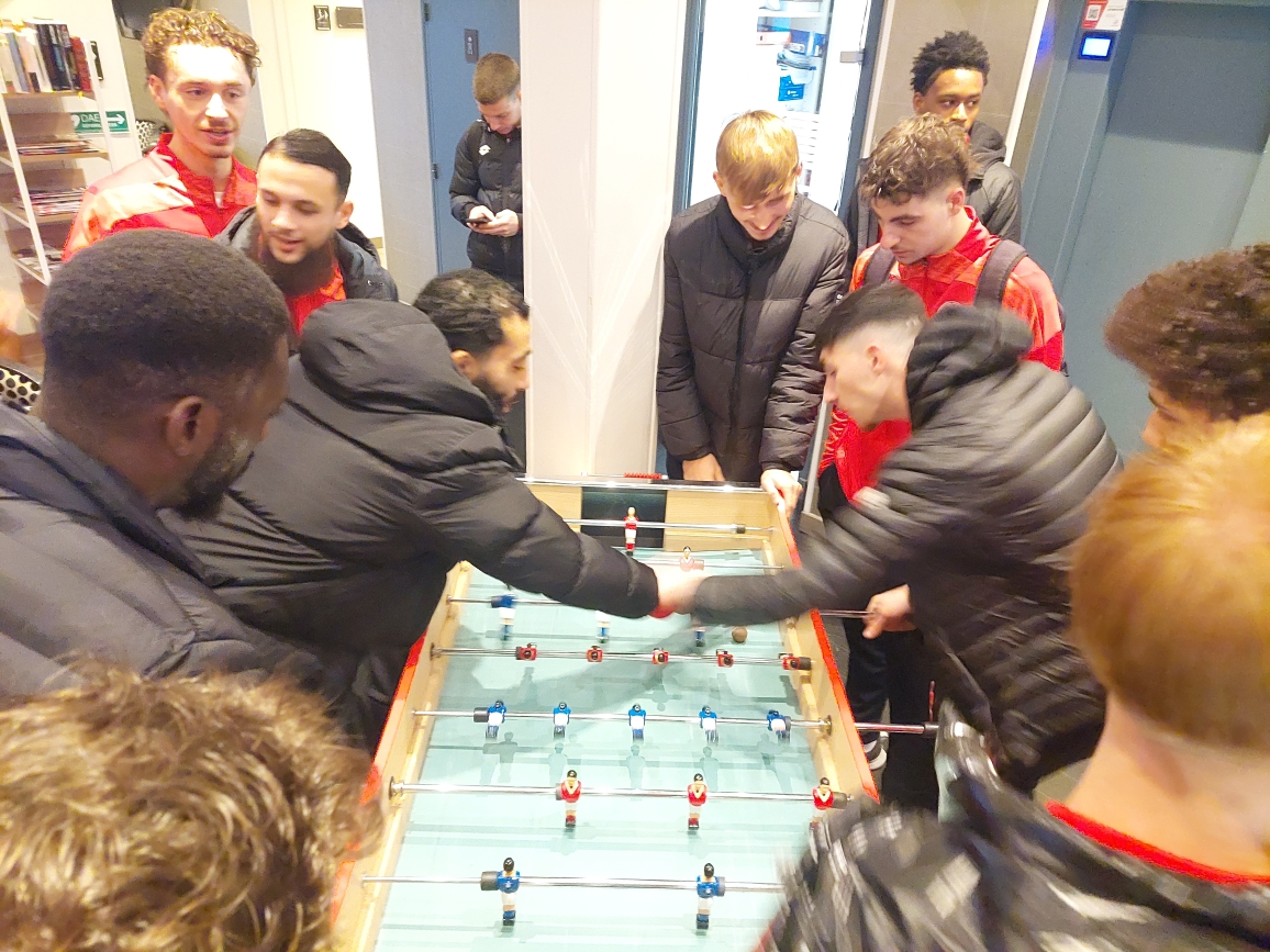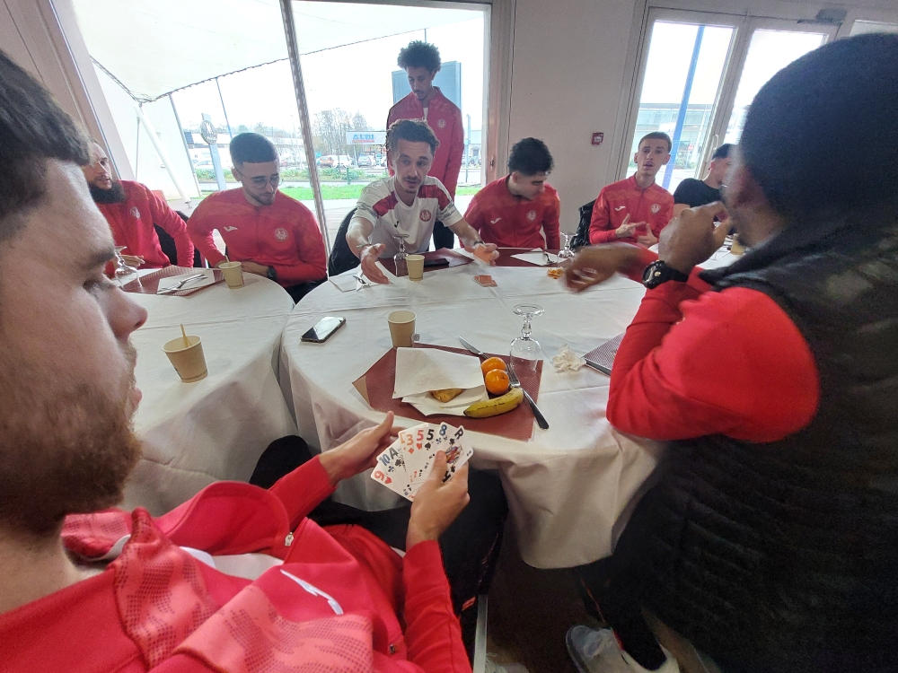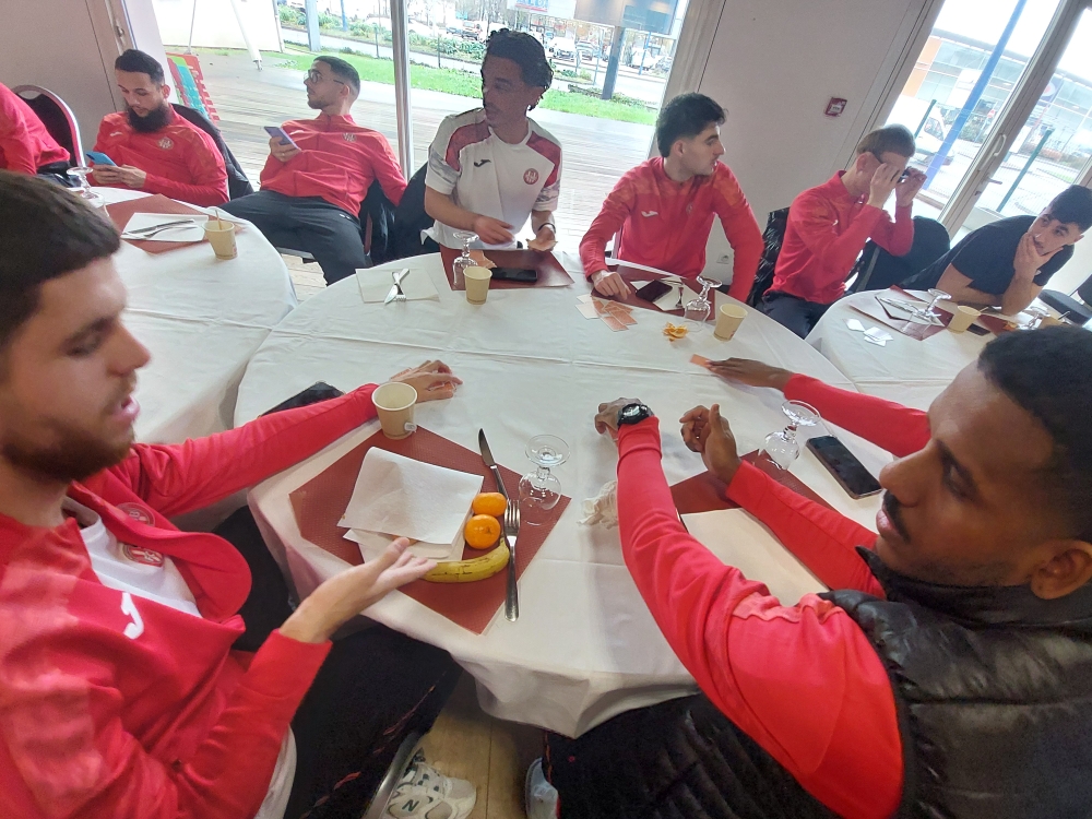 A peine le hall de l’hôtel envahi, que le baby-foot a été pris d’assaut. A 9h pétantes, direction la grand salle à manger pour un café, lecture de la presse locale les yeux rivés sur le portable avant qu’un jeu de cartes ne vienne égayer cette matinée pluvieuse.