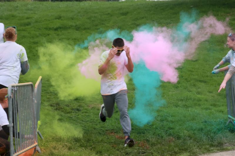 Le ciel était gris, mais les lunettes de soleil bien en place, t-shirt blanc sur le dos (en tout cas au départ) et sourire aux lèvres, pas de doute, c’était jour de Color Run au parc Maugrand à Montceau-les-Mines !