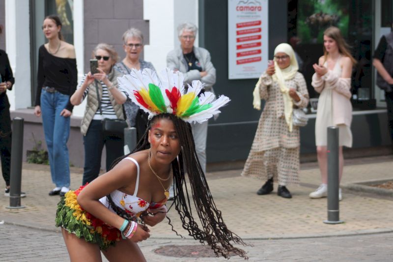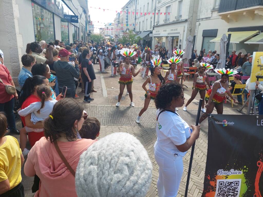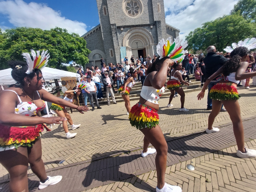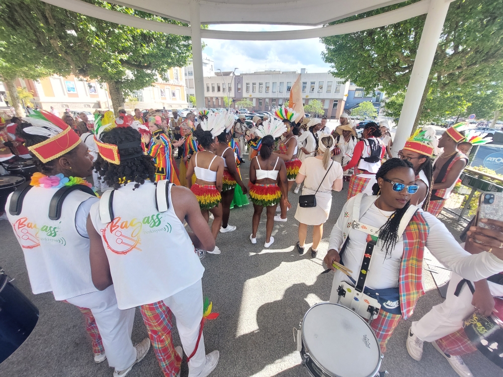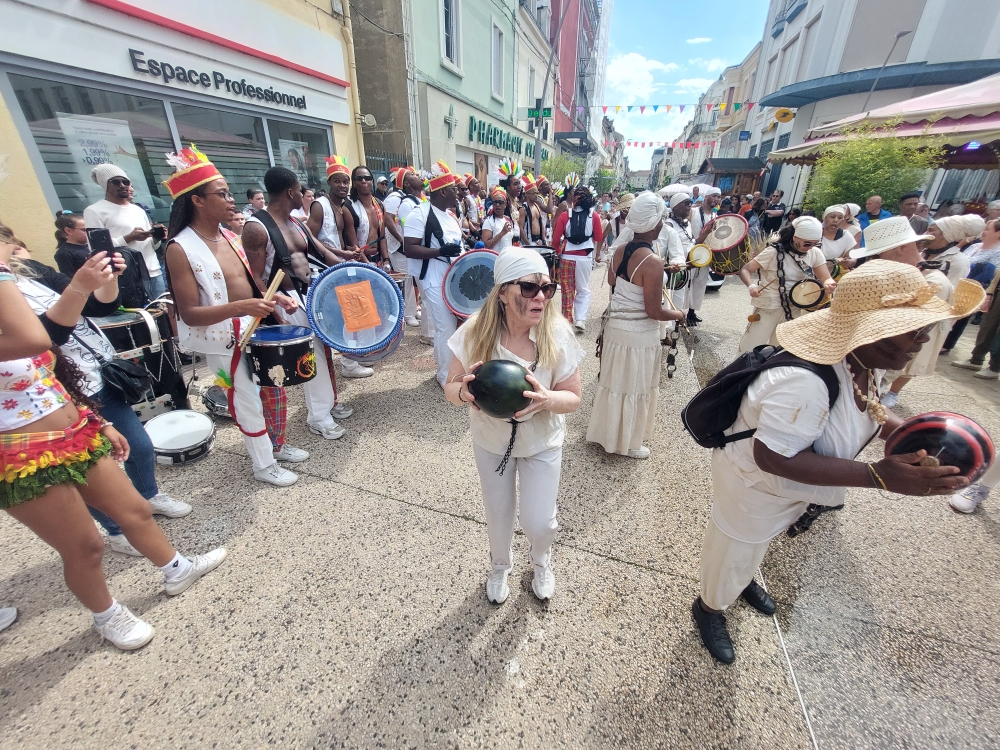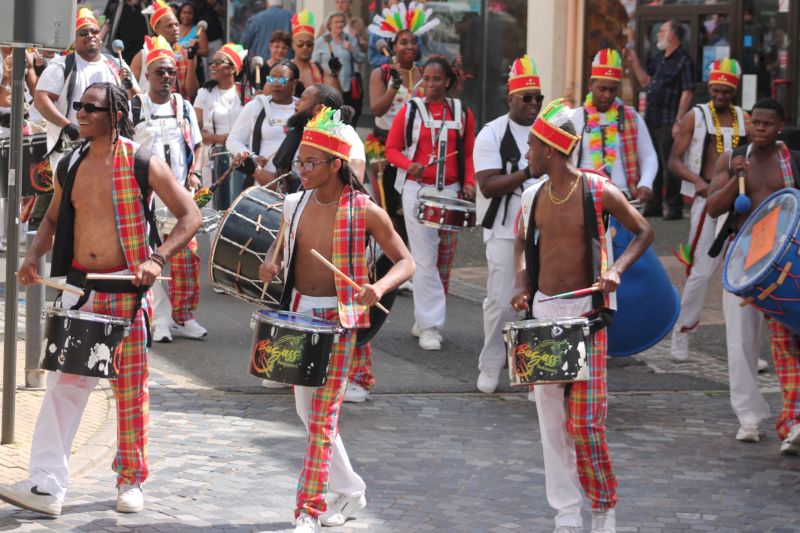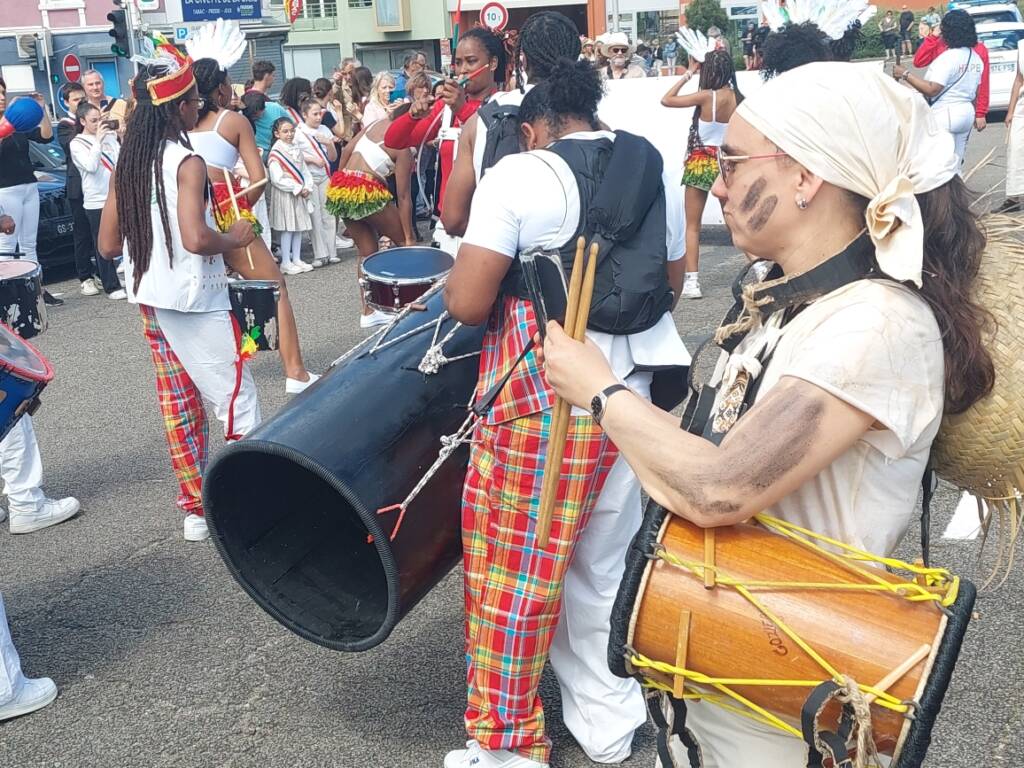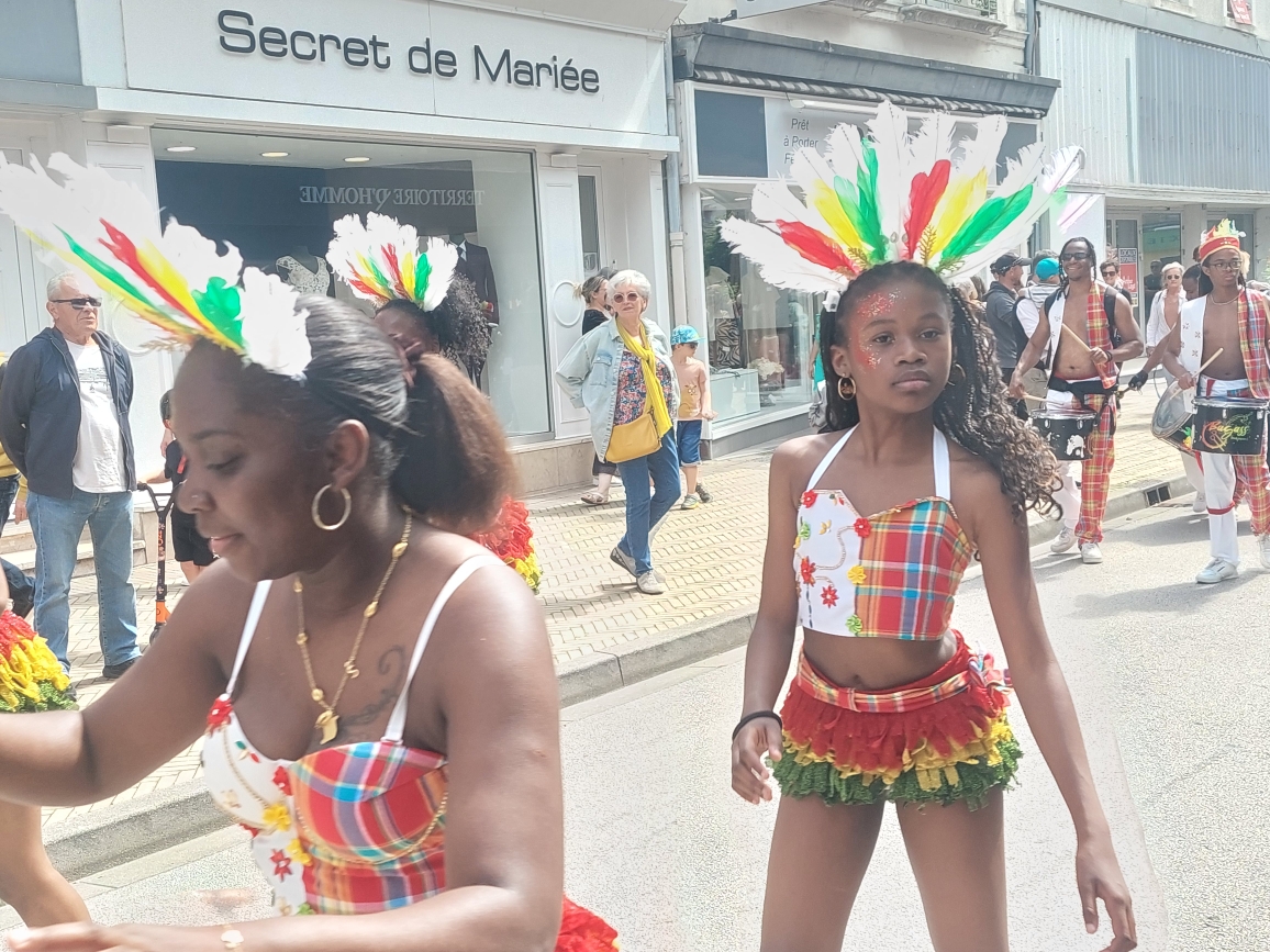 Nullement perturbé, Christiane Mathos donna l’ordre du départ de la parade. Un cortège coloré, rythmé, endiablé même, a donc parcouru le centre-ville sous un splendide soleil arrivé tout droit des Antilles.