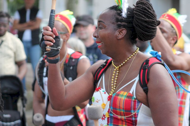 Avec Christiane Mathos, la cheffe d’orchestre du festival Outre Mer en Bourgogne, le temps n’a pas de prise sur elle. Elle organise comme elle vit, sans l’insouciance du lendemain. A l’heure de la parade dans les rues de Montceau-les-Mines, on ne pourra pas lui reprocher cette fois-ci son retard. Samedi, à 15h, elle était là devant la gare, téléphone à la main toutefois pour tenter de retrouver la délégation guadeloupéenne. « Les enfants sont fatigués, je ne sais pas », dit elle.