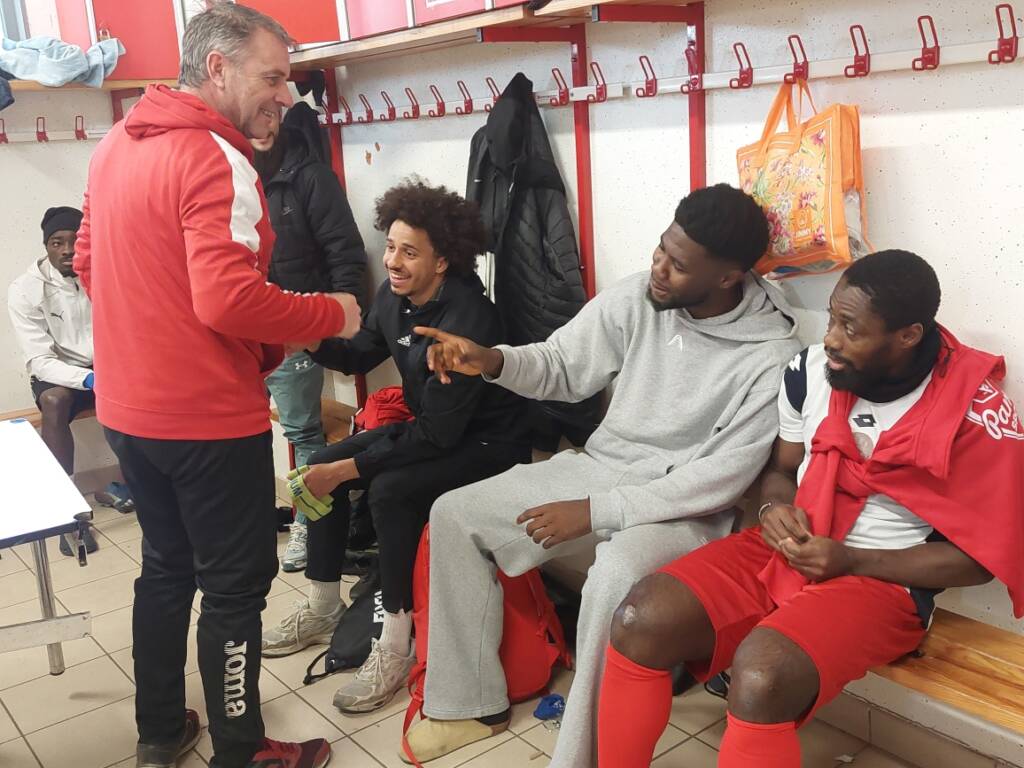 Dans le vestiaire, les visages s’illuminent. Les joueurs sont heureux de le revoir, et plus encore Tiémoko Konaté, avec qui les liens sont forts. Les deux recrues du début de saison se retrouvent aussitôt dans leur complicité, se chambrant comme s’ils ne s’étaient jamais quittés. Ensemble, ils ont porté le même maillot chez les professionnels du club danois de Vendsyssel. Les voilà réunis de nouveau, pour le plus grand plaisir de Lionel Large et d’un groupe qui, depuis le début de l’année, traverse une période chaotique.