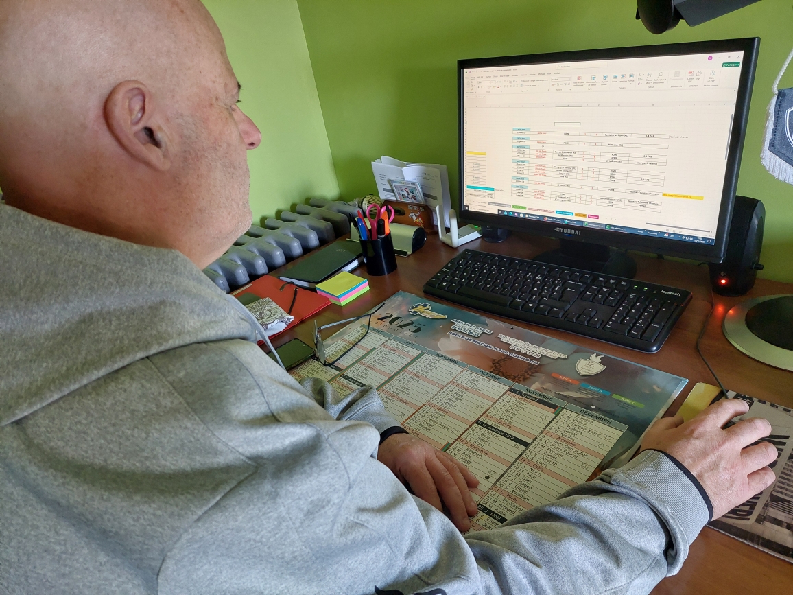 Bruno Guegniau, secrétaire du FCMB, est aussi, comme il aime le dire, un « homme à tout faire, multitâches », dit il le nez collé devant son écran. Il est la mémoire du club. Méticuleusement depuis l’ année 1949, il a tout compilé, tout enregistré, tout sauvegardé depuis une dizaine d’années. « Un jour, quelqu’un m’a posé une question sur le FCMB. J’ai cherché, fouiné un peu partout… et j’y ai pris goût », confie-t-il.