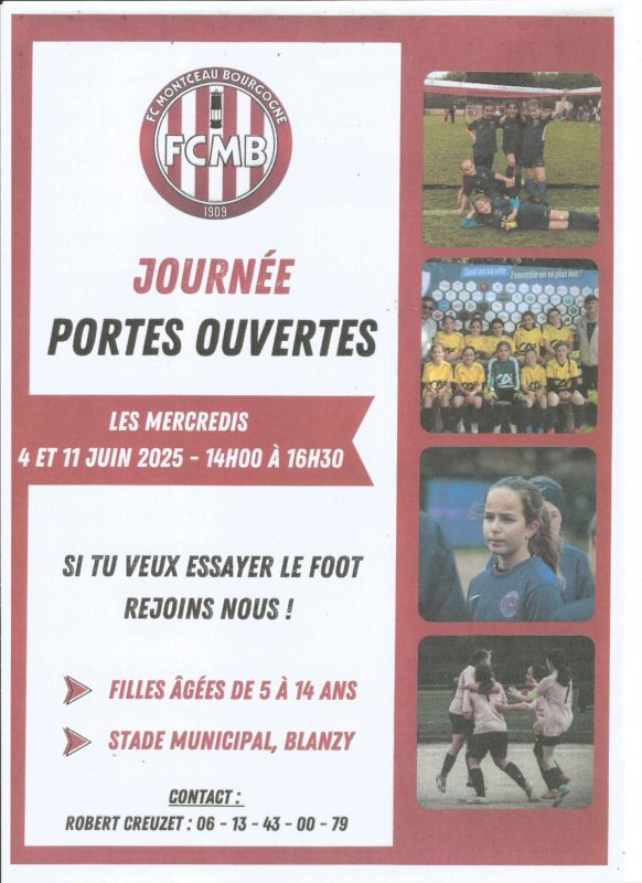 La section féminine qui a pour ambition de se développer, organise une journée portes ouvertes, les mercredis 4 et 11 juin 2025 de 14h à 16h30 au stade municipal de Blanzy.