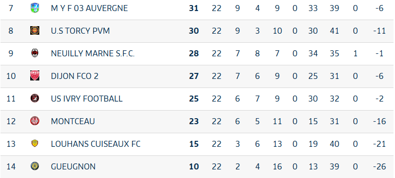 Ceci dit, Montceau n’est pas encore relégué. Il lui reste encore quatre matches pour sortir de la zone rouge mais plus l’échéance approche, plus les chances s’amoindrissent. Pour ne pas tout hypothéquer, les Montcelliens doivent impérativement s’imposer samedi 19 avril aux Alouettes contre Dijon ASPTT, un club qui peut encore aller chercher la 3e place mais juste pour la gloire.