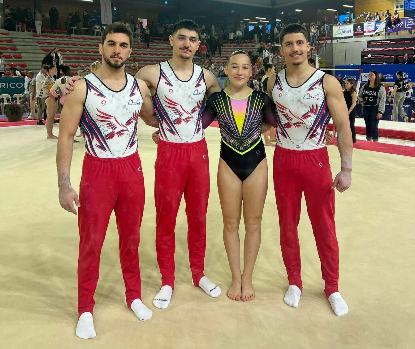 Du côté des masculins, Mattéo CARTIER réalise un bon tour sur ses agrès forts et en bonus une belle prestation au sol ce qui lui permet d’accrocher la 20ème place pour sa première apparition en senior. Bastien ELOY a proposé un travail de qualité. Après une opération de l’épaule qui l’a éloignée des agrès pendant une longue période, Bastien a su faire preuve de sérieux et de beaucoup de rigueur pour revenir à ce niveau de compétition et se qualifier pour cette échéance. Sa prestation d’ensemble lui permet de totaliser 74.400pts, de décrocher la 11ème place et de se qualifier pour la finale aux anneaux. Une erreur lors de sa diagonale au sol le prive de finale lui le double tenant du titre à cet agrès. Enfin, et malgré un mois d’avril difficile, Kevin CARVALHO a su mobiliser toute son énergie pour réaliser un tour aussi courageux que solide. Deux erreurs inhabituelles – aux anneaux et en sortie à la barre fixe – le privent d’un TOP 5 mais Kevin a fait preuve d’une grande force de caractère pour boucler cette rotation et accrocher une place en finale aux barres parallèles.