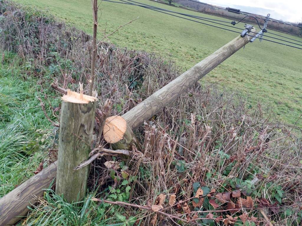 Après l’abattage mystérieux d’un chêne puis d’un sapin sur la commune de Pouilloux, un nouvel acte incompréhensible vient d’être découvert, plusieurs poteaux électriques ont été soigneusement tronçonnés sur la route de Perrons, ce chemin discret qui serpente entre Saint-Romain-sous-Gourdon et Mont-Saint-Vincent.