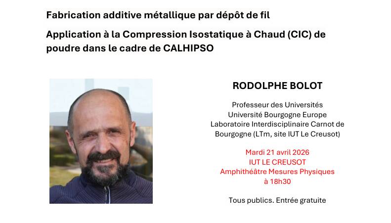 L’Académie François Bourdon organise une conférence mardi 21 avril 2026 à 18h30 à l’IUT du Creusot dans l’amphi de Mesures Physiques.