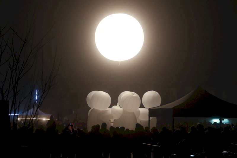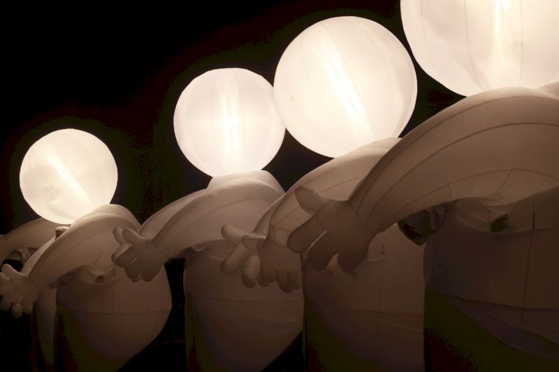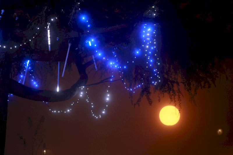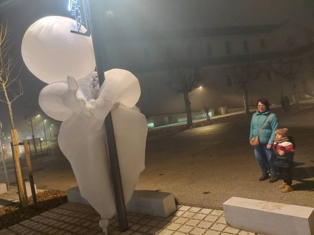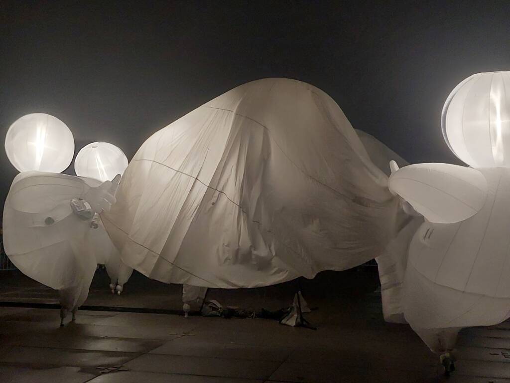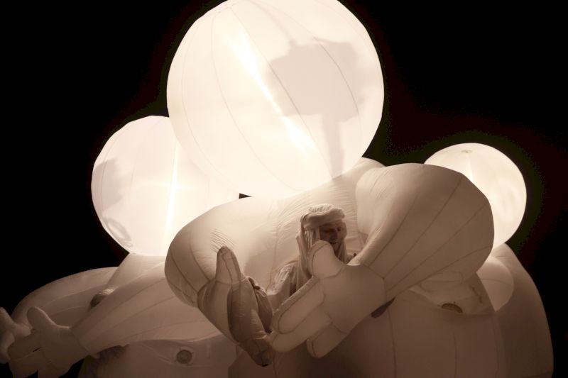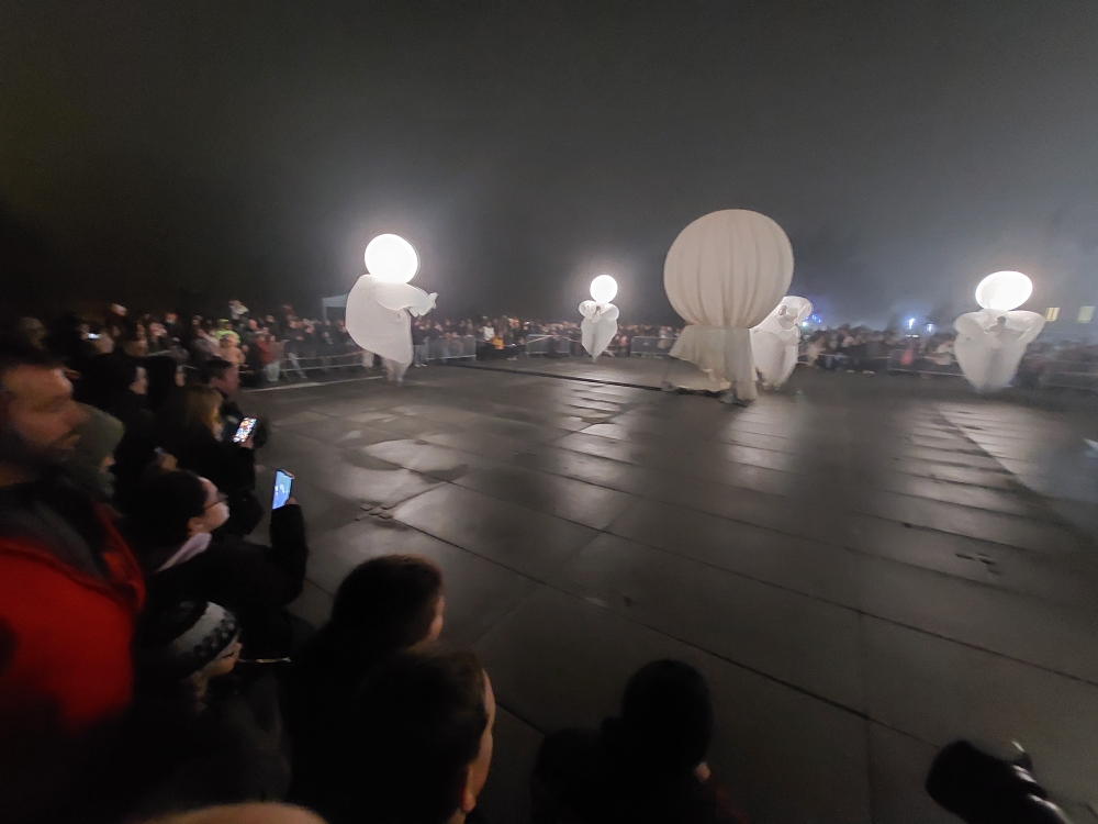 Au milieu de cet écrin apaisé, des créatures d’un blanc immaculé surgies des entrailles de la terre, se sont dressées, mystérieuses et bienveillantes. Elles éclairent, veillent, invitent au rêve. Une danse en noir et blanc s’est alors engagée, subtilement dirigée par la vasque lunaire qui domine la place et diffuse une lumière douce, presque céleste.