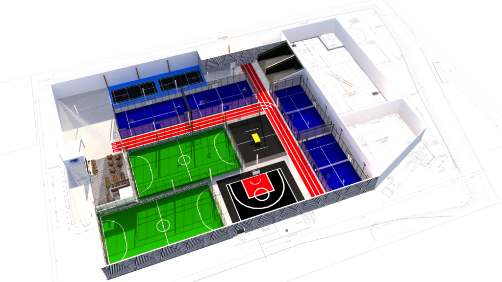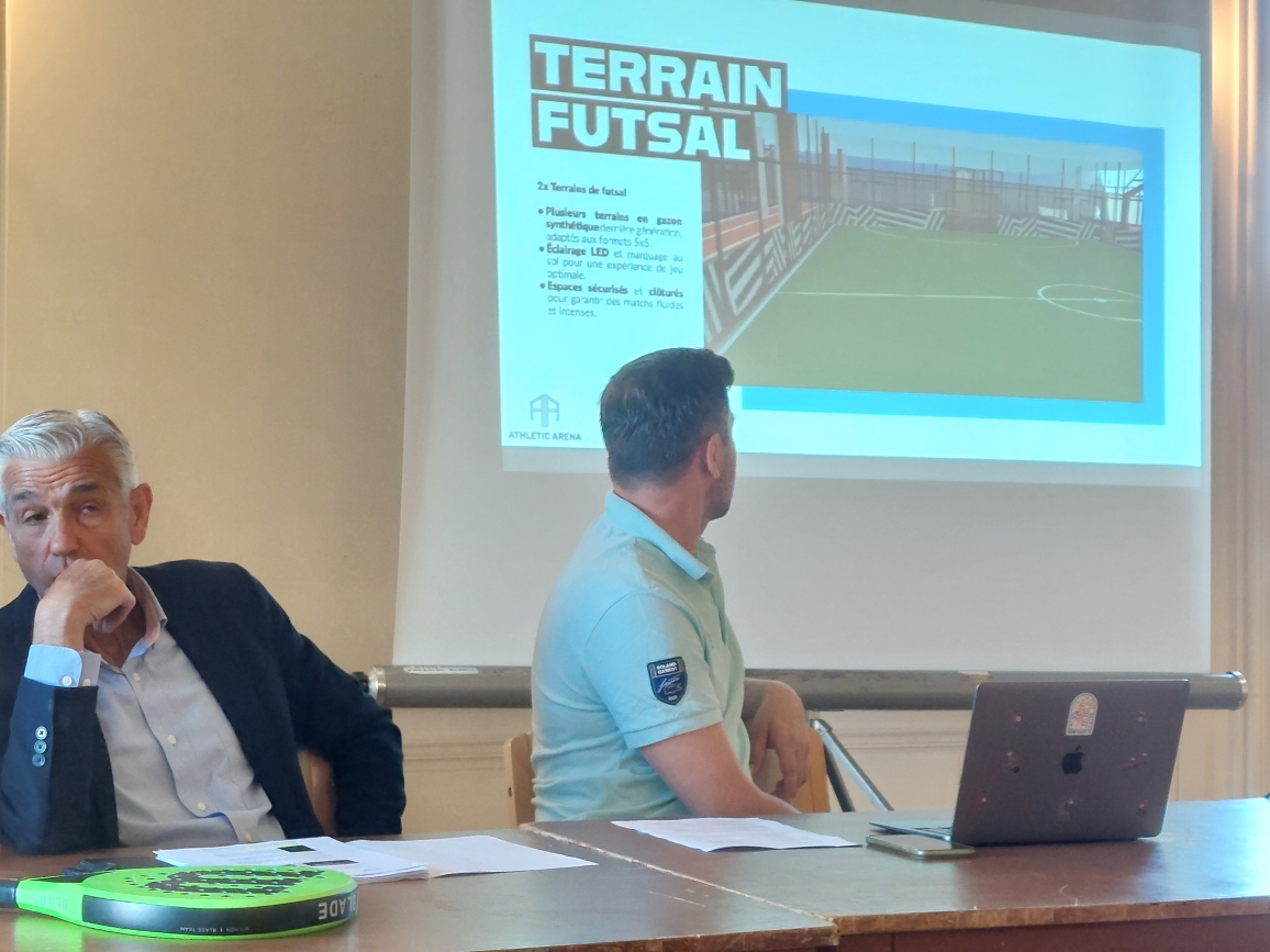 L’Athletic Arena est un projet ambitieux sur 6000 m2 indoor et autant en parking. « Il correspond à notre souhait, un temple du sport attractif pour la population qui veut pratiquer des activités sportives ». Les aménagements vont aller très vite puisque l’ouverture au public est prévu pour la rentrée 2025. Un peu plus de quatre mois pour installer 2 terrains de futsal, 1 basket 3×3, 4 terrains de padel, 2 de badminton, 2 de squash et 1 de teqball, y compris 200 m2 de vestiaires et un club house, pour étancher sa soif après l’effort et assister aux grands événements sportifs retransmis sur petit écran. « Ce soir (mardi), on aurait pu regarder Arsenal – PSG » imagine Florian Courrège qui a même prévu, au printemps 2026, d’ouvrir 3s terrains de padel sur le parking.