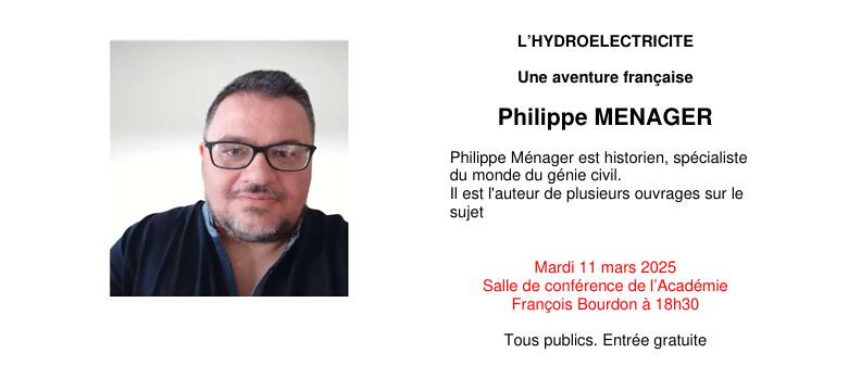 La prochaine conférence organisée par l’Académie François BOURDON sera donnée par Monsieur Philippe Ménager, historien, spécialiste du monde du génie civil. Il est l’auteur de plusieurs ouvrages sur le sujet.