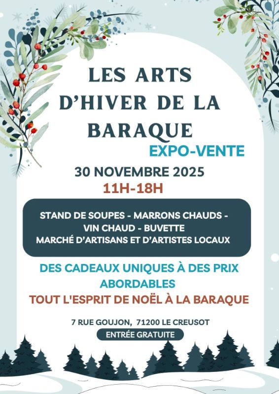 La Baraque organise les arts d’hiver, une expo-vente dimanche 30 novembre 2025 de 11h à 18h au 7 rie Goujon au Creusot. L’endroit pour trouver des cadeaux uniques à des prix abordables.