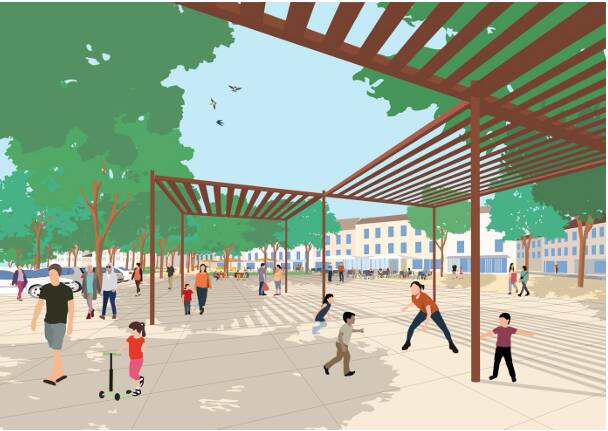 L’objectif de ces travaux : créer une cohérence entre la place entièrement repensée et la rue, en travaillant la transition entre la zone dite de loisirs et de déambulation et les espaces de circulation, en intégrant toutes les mobilités, tous les services et commerces présents sur cette zone.