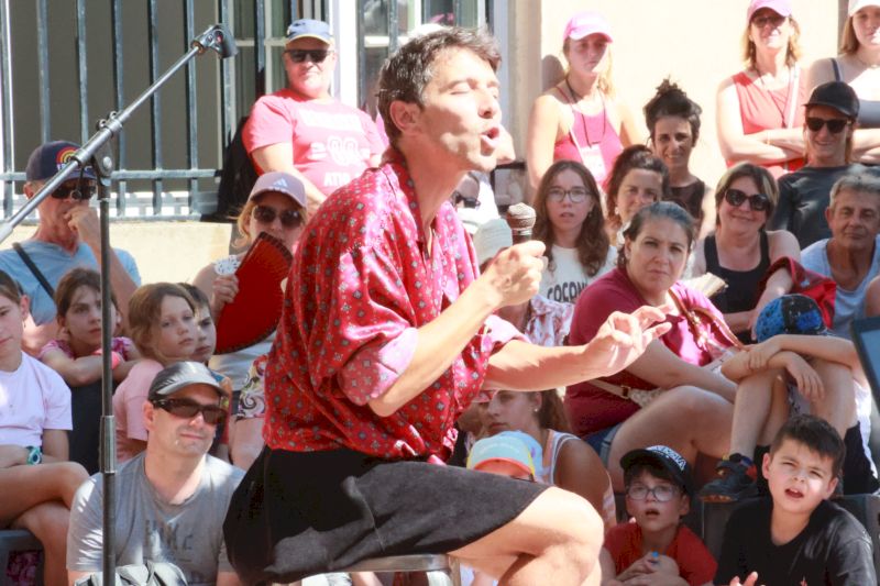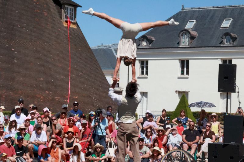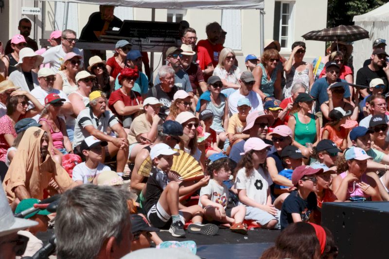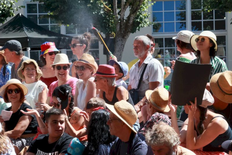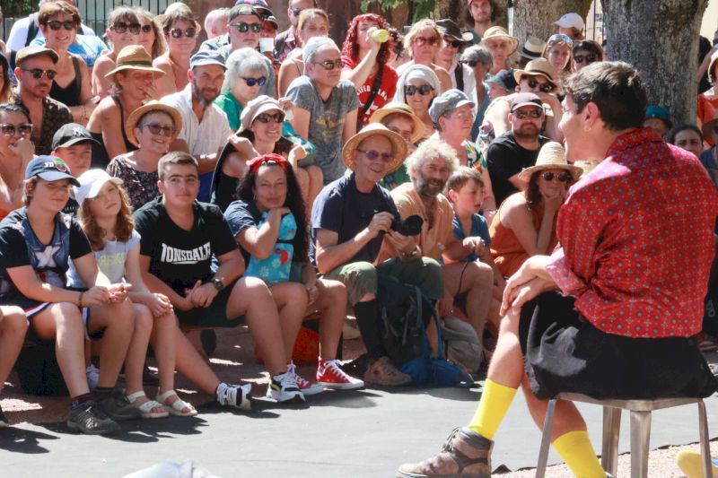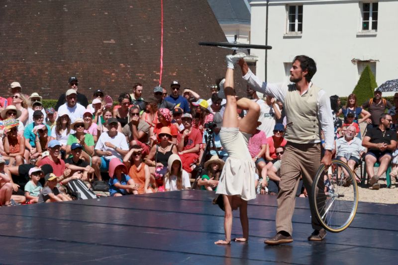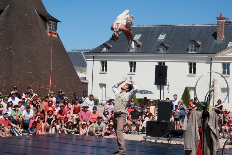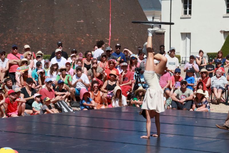 Malgré la chaleur écrasante de ce samedi après-midi, le public est au rendez-vous, nombreux, curieux, enthousiaste. On s’émerveille devant “Time to Loop”, performance de cirque acrobatique hypnotique, on sourit, on vibre avec Valentin Dilas dans Playback FM, qui endosse jupe et verbe avec panache et tendresse, enfin presque toujours.
