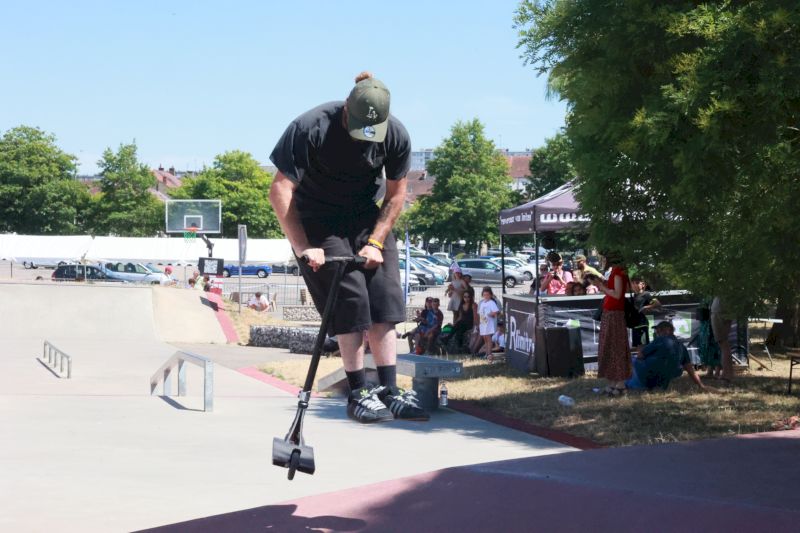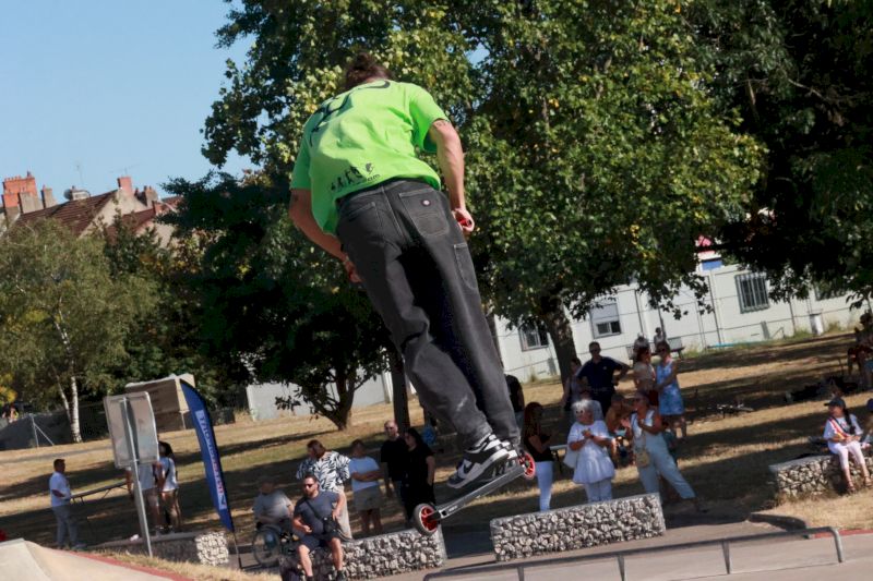 Pendant toute la journée, les néophytes comme les plus aguerris et même pour certains, les meilleurs riders de la région parisienne ou carrément le vice-champion de France, Jaris Bretagnolles, le roi du BMX freestyle dont les démonstrations ont époustouflé le jeune public, réussissant des figures que lui seul maîtrise au monde, tous ont magnifiquement contribué au spectacle, même les jeunes de la délégation allemande de Geislingen (ville jumelée avec Montceau) qui ont démontré un réel savoir-faire sur trottinette. Heureusement, quand il s’agit d’une compétition officielle, la France reste devant l’Allemagne (voir la victoire du PSG contre Le Bayern Munich samedi en Coupe du monde des clubs de football). On se rattrape comme on peut !
