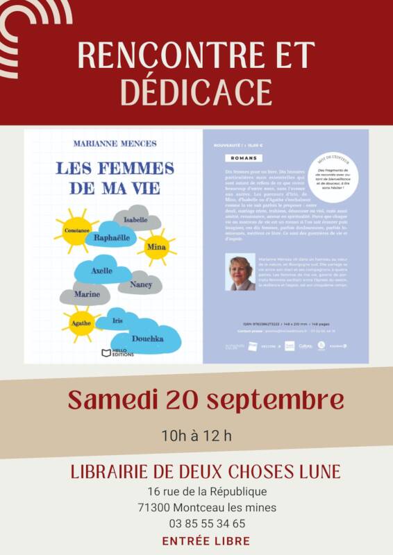 Les événements de septembre 2025 à la librairie De deux choses Lune à Montceau-les-Mines, rue de la République.