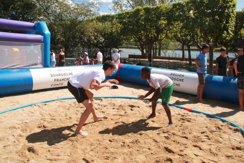 Le club de lutte montcellien organise avec le comité de Bourgogne Franche-Comté de lutte l’Open régional de Beach wrestling ce samedi 31 mai au parc du centre nautique de Montceau de 14h à 16h00.
