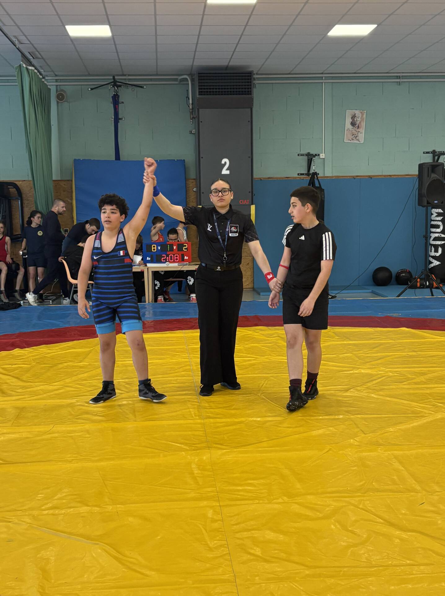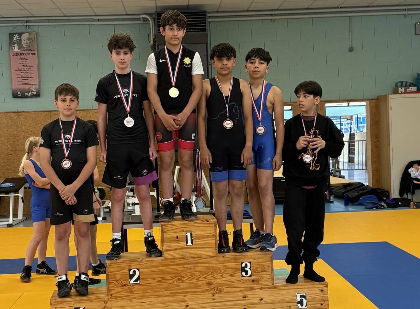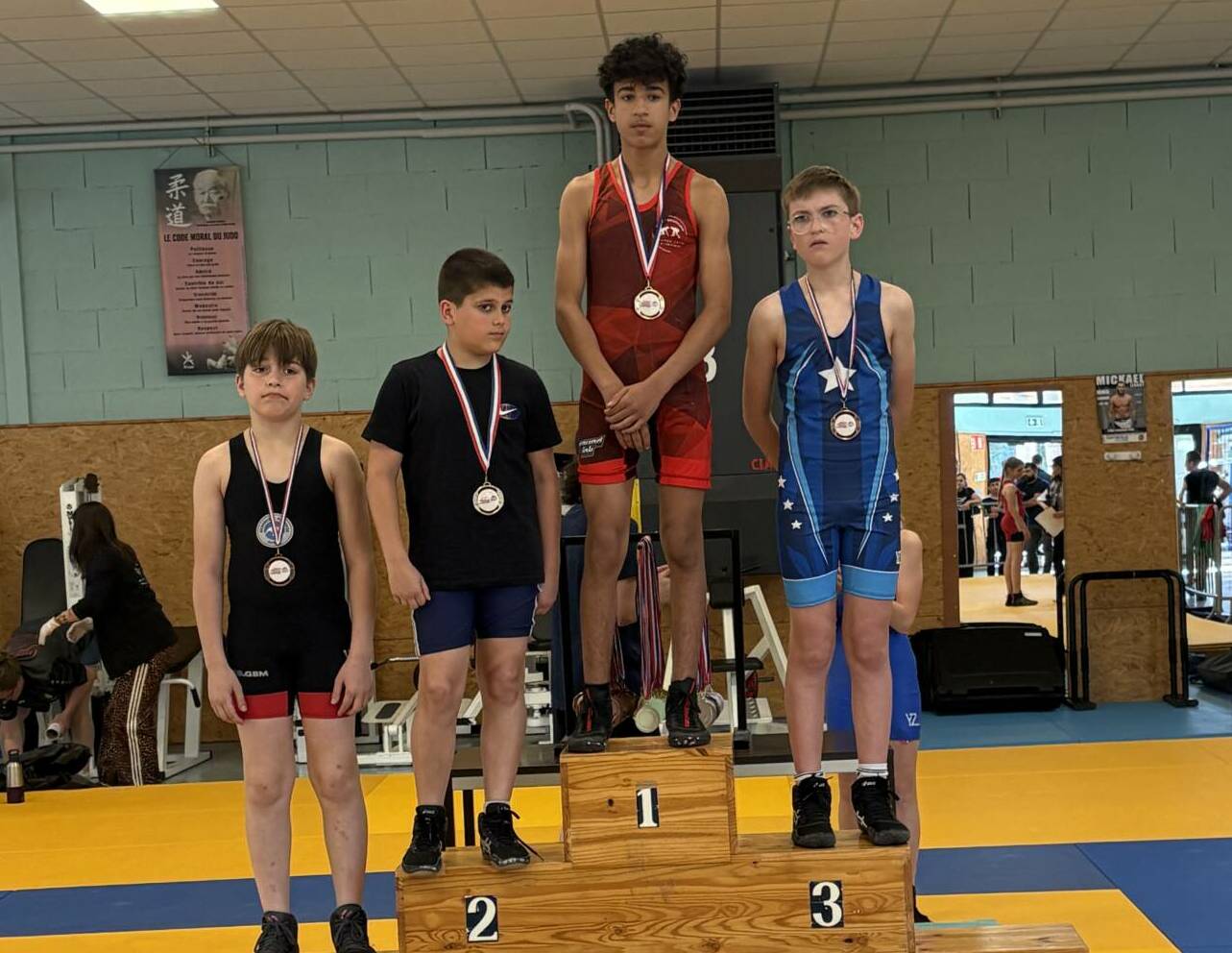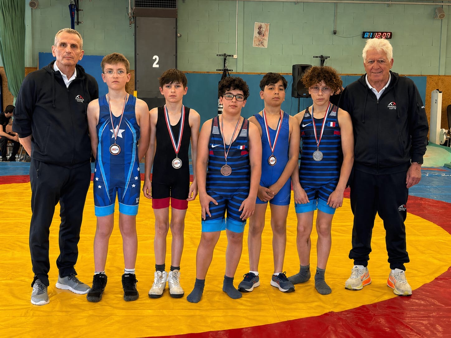 L’équipe montcellienne composée de 14 lutteurs, remporte 2 titres et 13 podiums. Les titres sont venus des plus jeunes avec les performances de Camille et Mohammed vainqueurs de leur catégorie. Belle performance également de Liam Kessiri en U9 et Clément Lapalus en U11 avec l’argent.