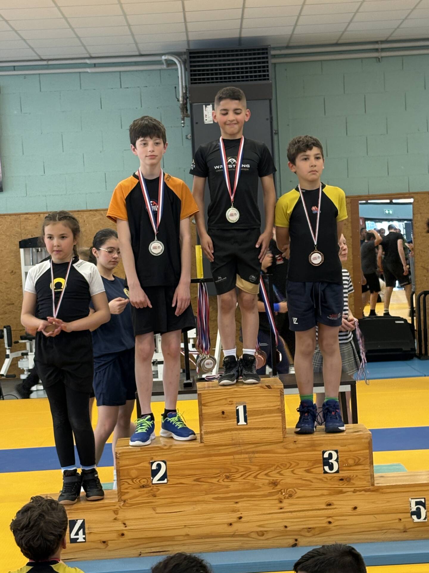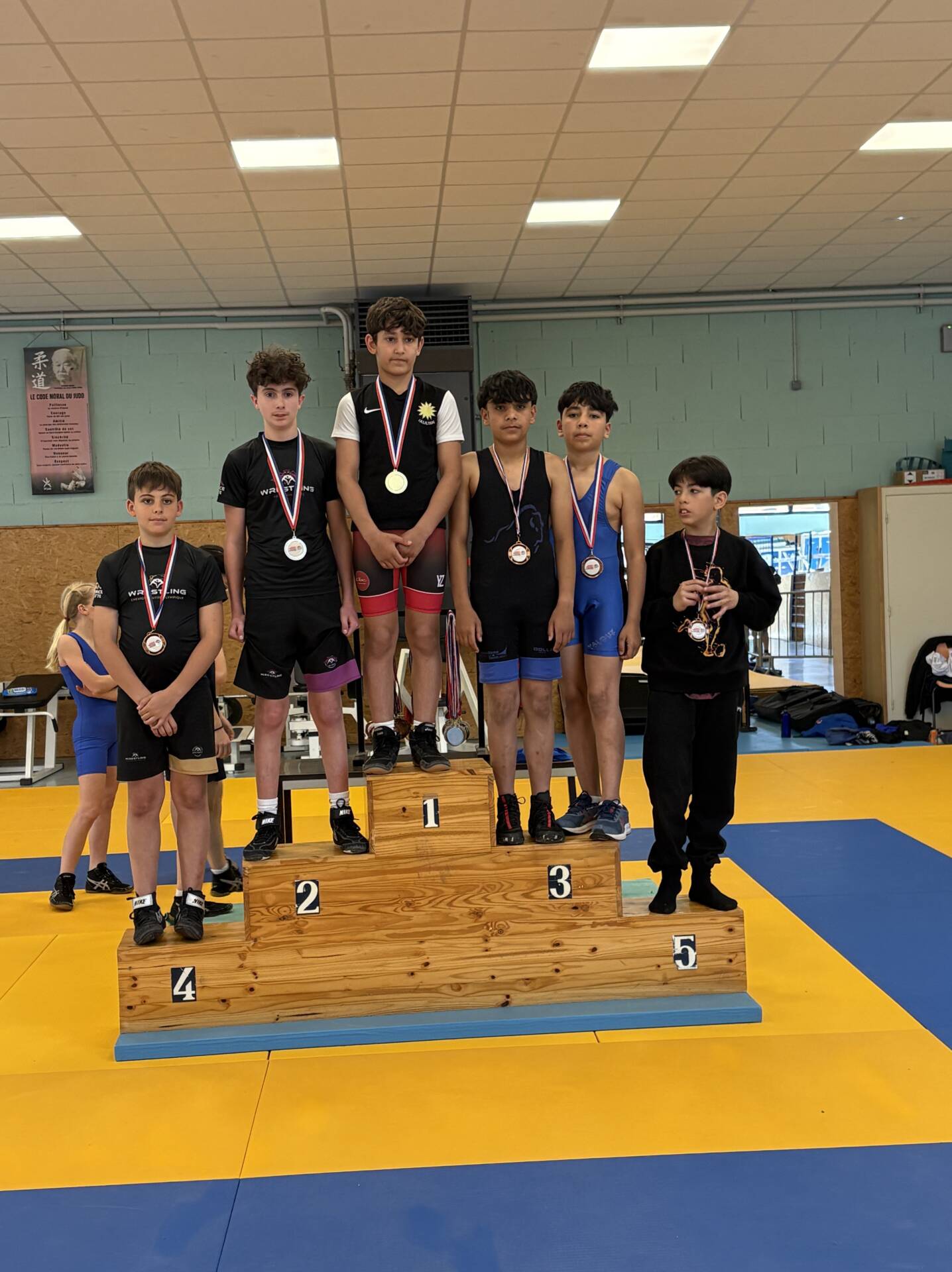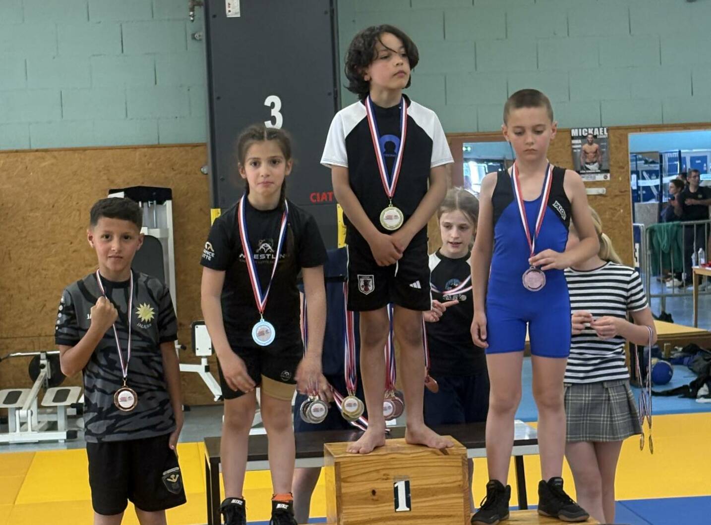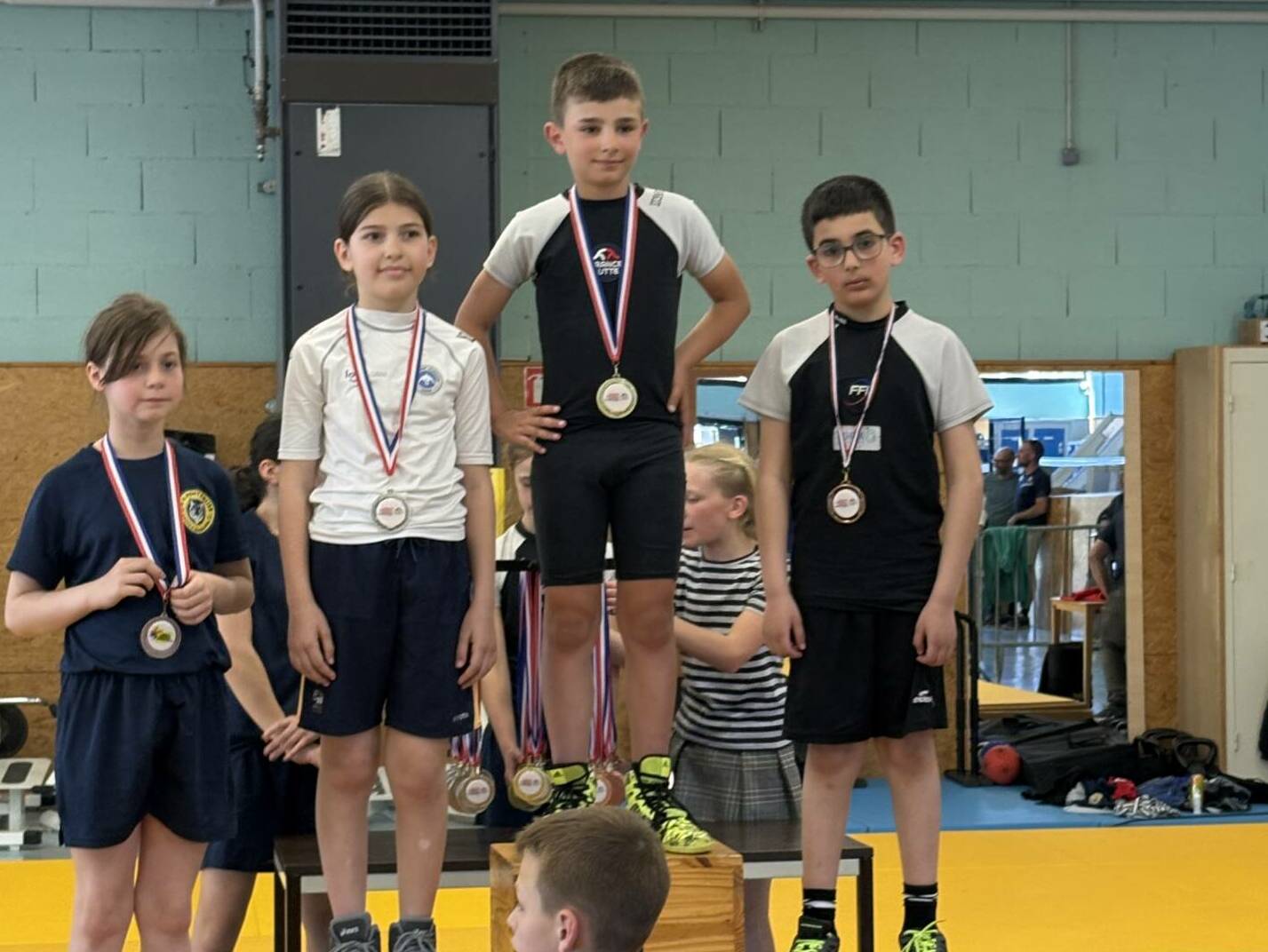 L’équipe montcellienne composée de 14 lutteurs, remporte 2 titres et 13 podiums. Les titres sont venus des plus jeunes avec les performances de Camille et Mohammed vainqueurs de leur catégorie. Belle performance également de Liam Kessiri en U9 et Clément Lapalus en U11 avec l’argent.