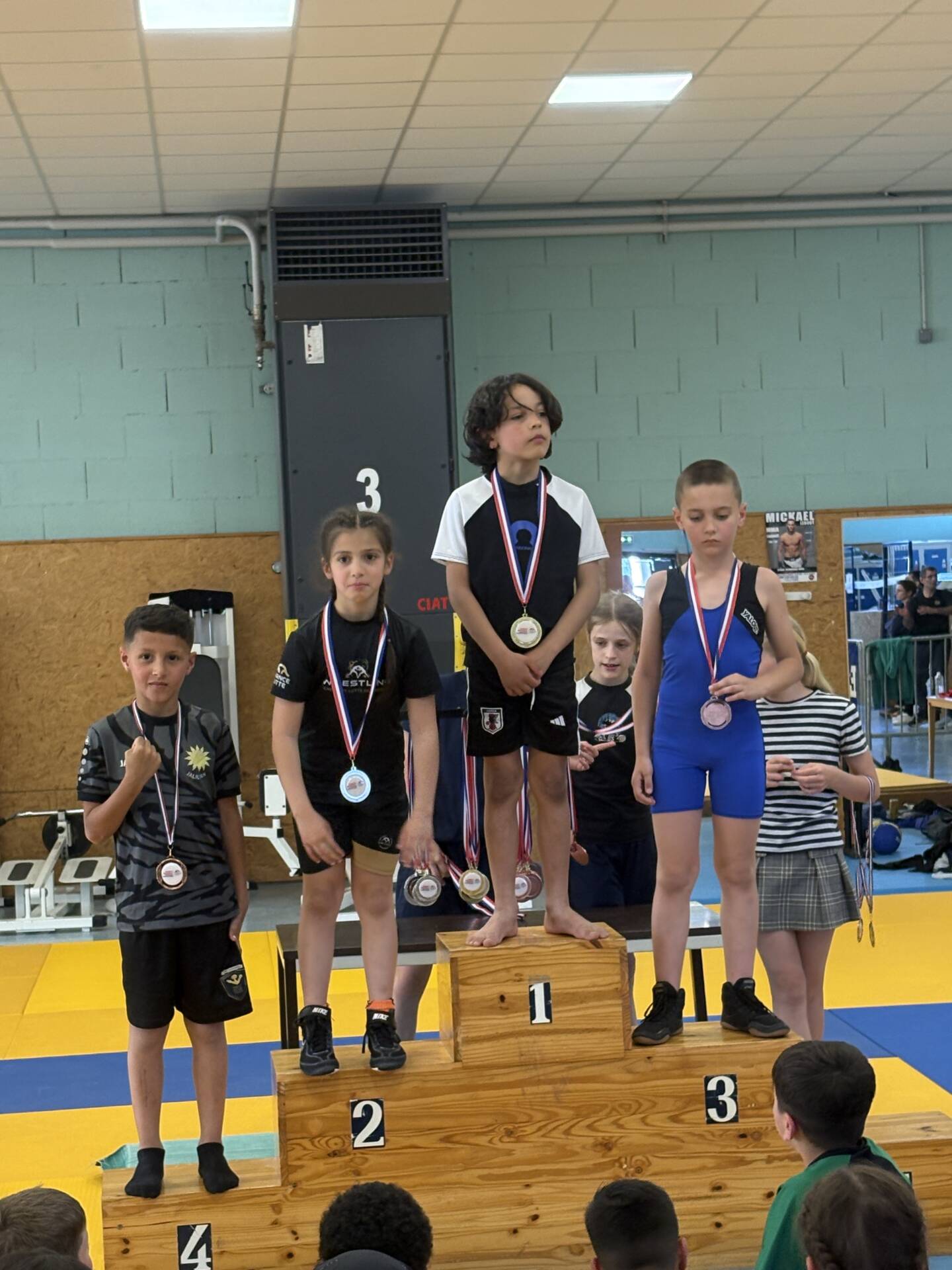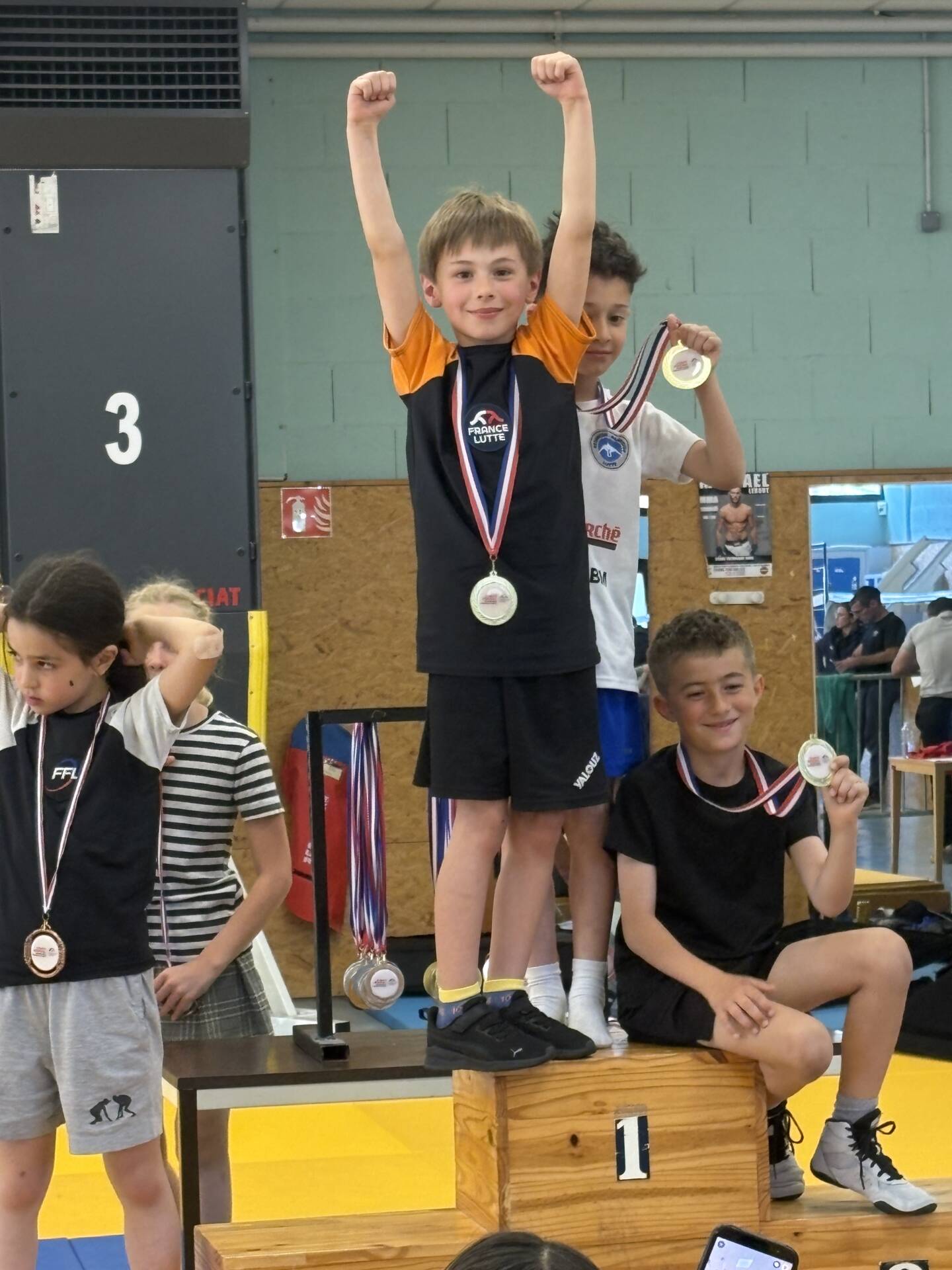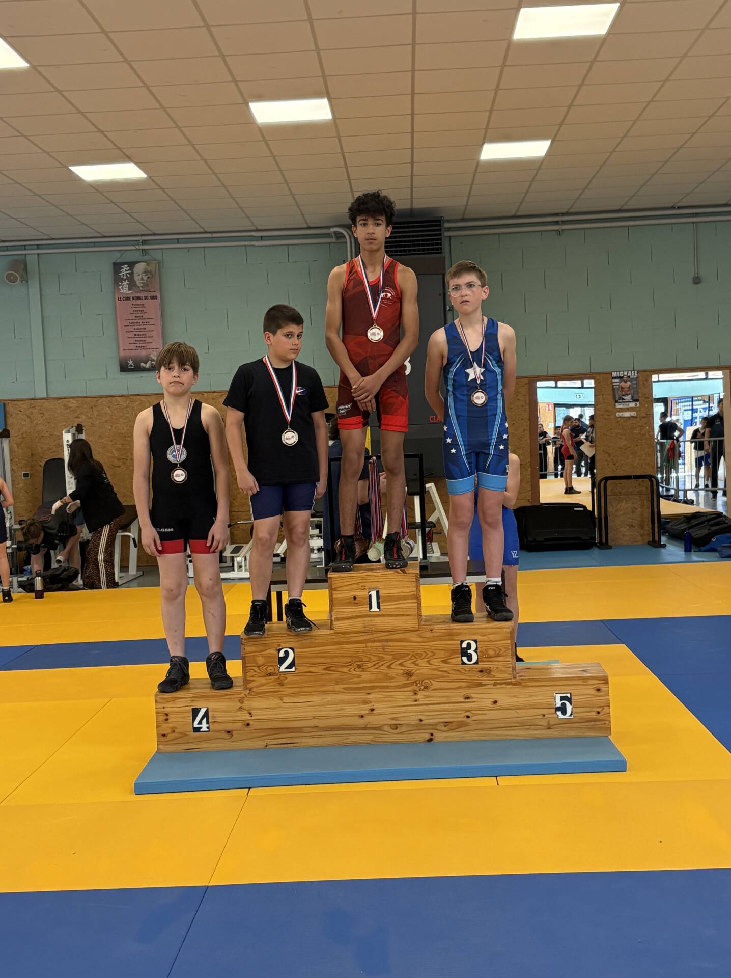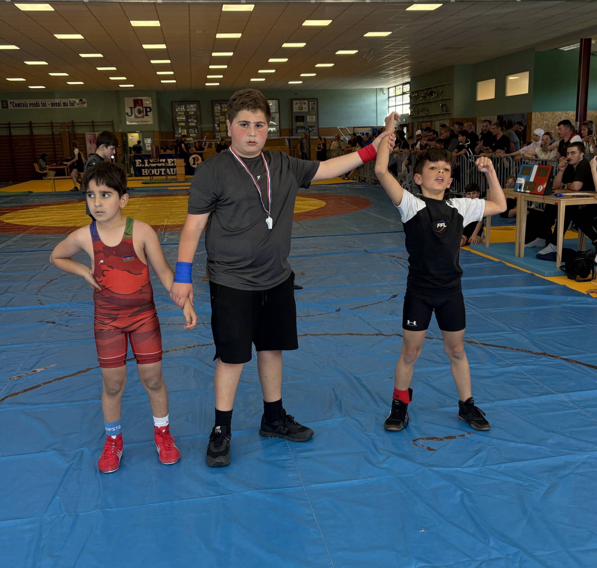 L’équipe montcellienne composée de 14 lutteurs, remporte 2 titres et 13 podiums. Les titres sont venus des plus jeunes avec les performances de Camille et Mohammed vainqueurs de leur catégorie. Belle performance également de Liam Kessiri en U9 et Clément Lapalus en U11 avec l’argent.