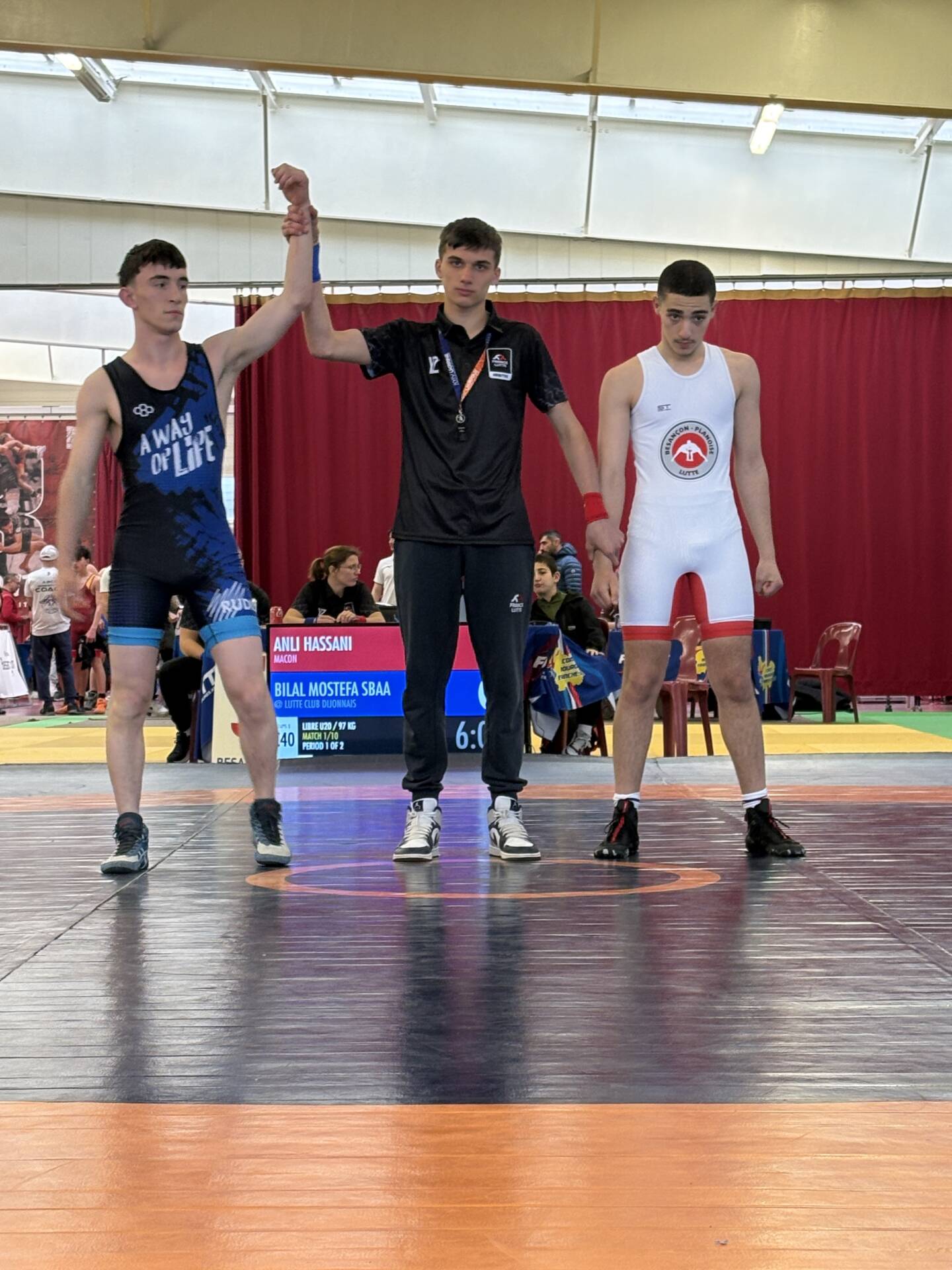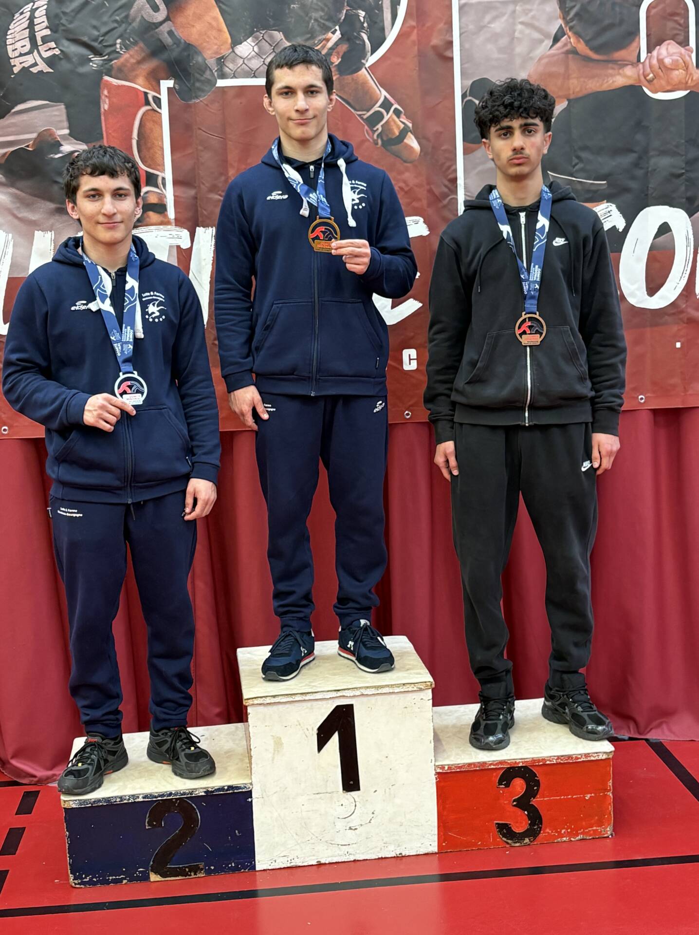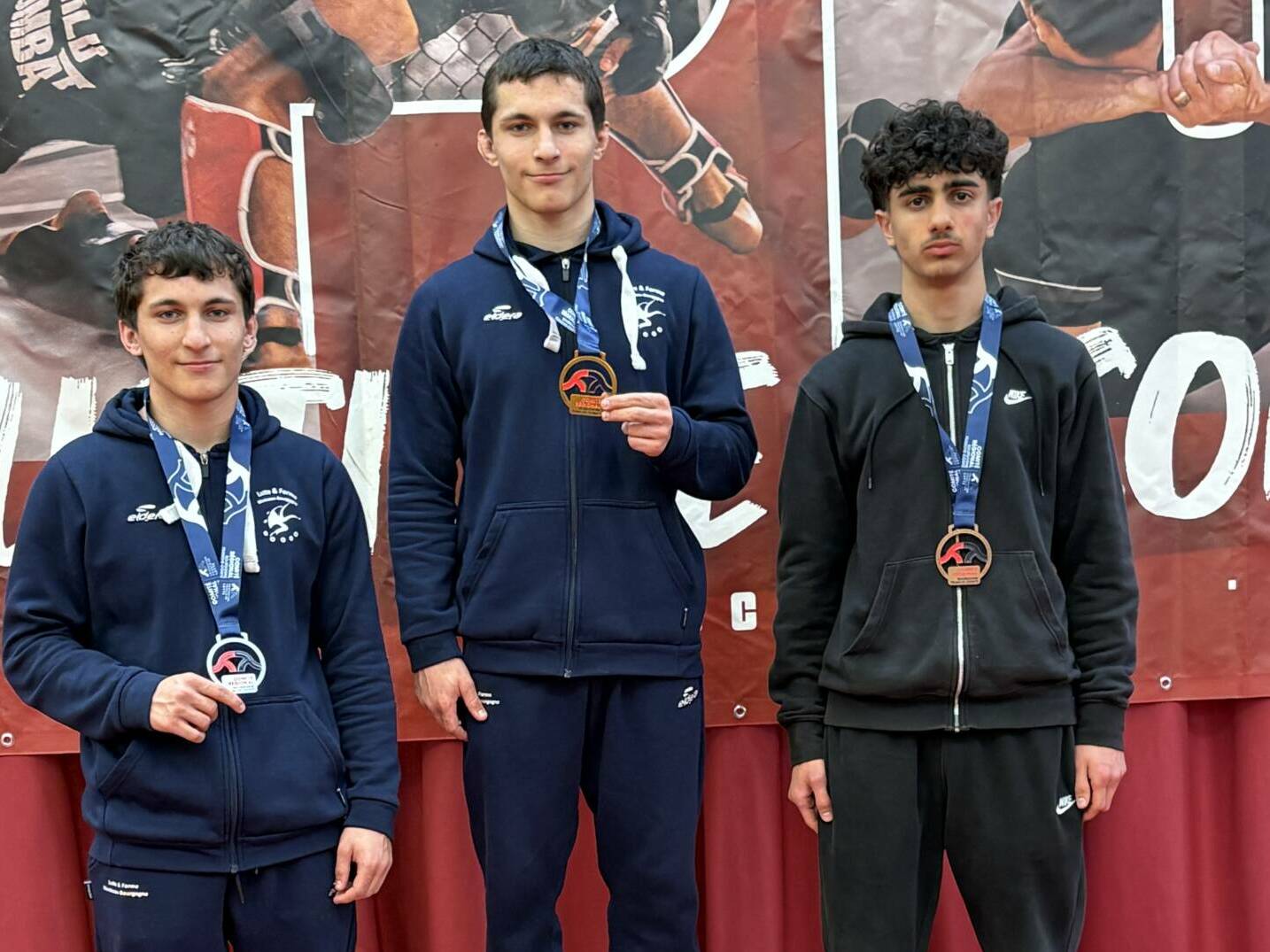 Les champions Bourgogne Franche-Comté : DEMONTIS Jules en 75kg U15 GUILLERMIN Antoine en 60kg U17 ABDULKERIMOV Ramazan en 57kg U20 |