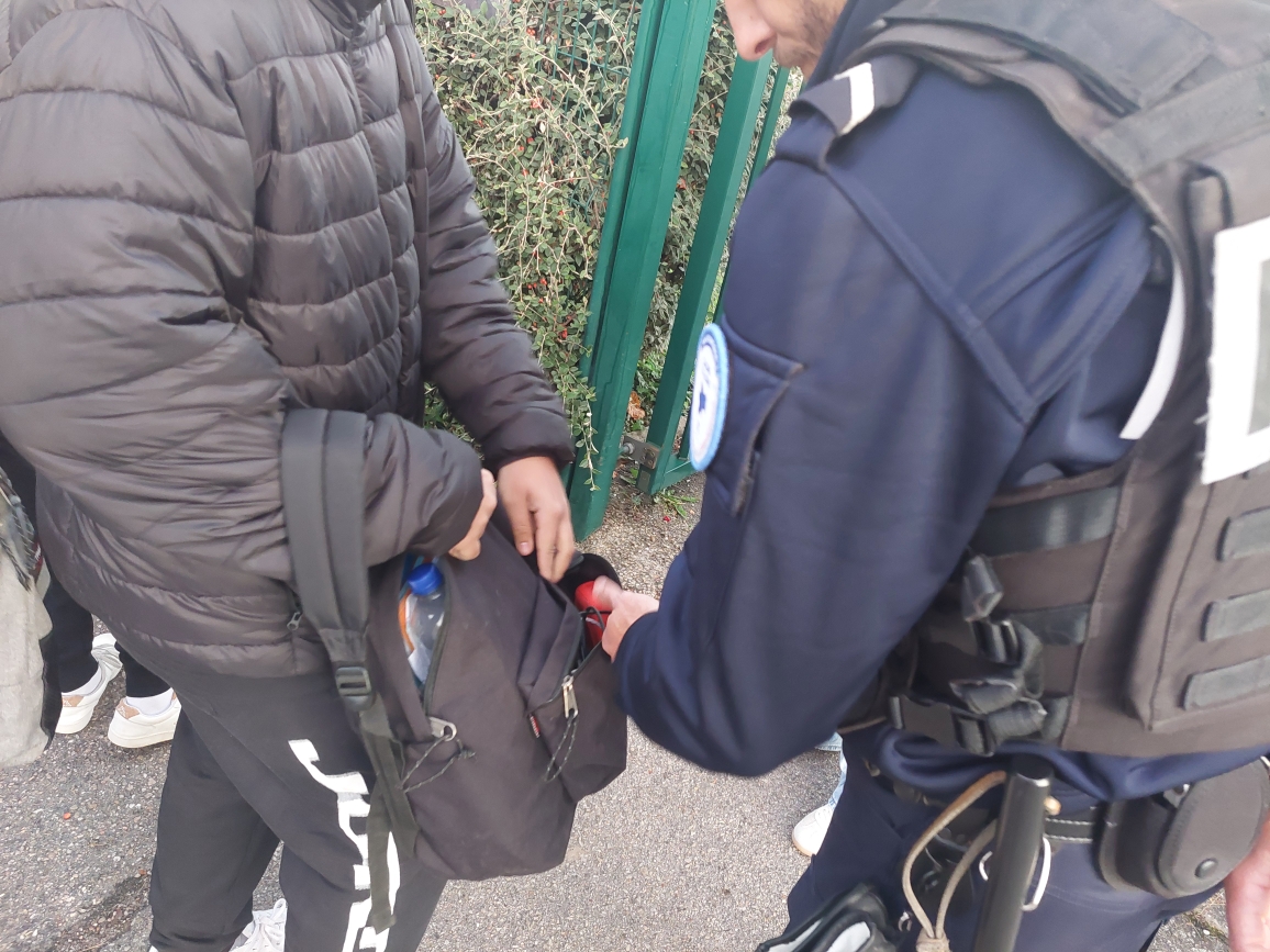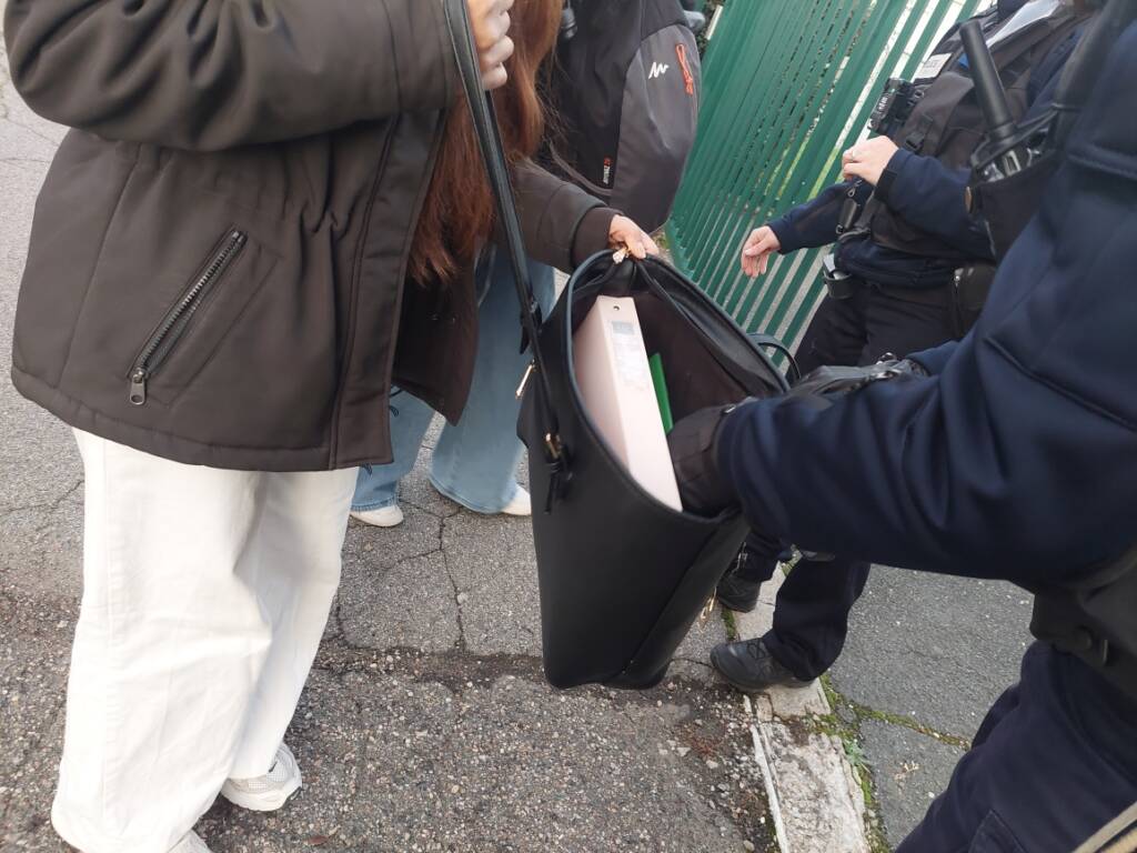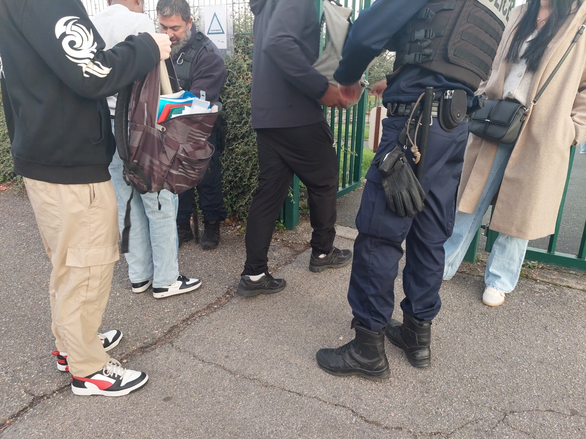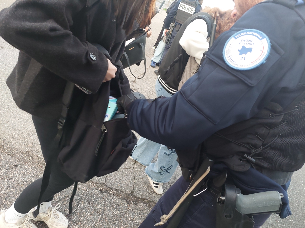Cette fois-ci, la police est là, devant la grille du lycée. Sur réquisition du parquet, les forces de l’ordre ont pour mission de fouiller les sacs, contrôler qu’aucun objet « dangereux » ne s’y trouve. Les lycéens n’ont pas bronché et machinalement, comme tous les matins quand ils ont cours, ils ont ouvert leur sac.