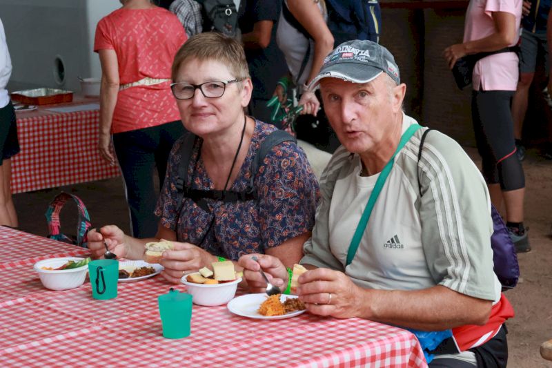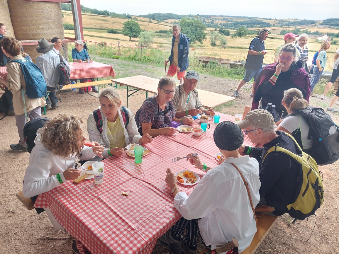 Cette année, pas de scrutin à l’horizon, mais une autre inquiétude planait : la canicule. Finalement, c’est un temps digne d’un mois d’octobre qui a accueilli les marcheurs. Ciel gris, fraîcheur bienvenue, et même quelques gouttes de pluie ici et là. « Idéal pour marcher ! Il ne fait pas trop chaud, et les ravitaillements sont excellents », glissent, ravis, plusieurs randonneurs-gourmands entre deux bouchées.