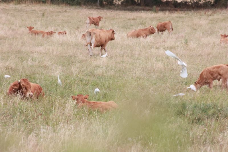 Autre bonne surprise : en ce week-end de grands départs, pas de bouchons… ni sur les routes, ni sur les sentiers. Les trois parcours, serpentant à travers les Monts, ont offert une belle respiration. Même les hérons garde-bœufs semblaient vouloir faire une pause, tranquillement posés dans les prés.
