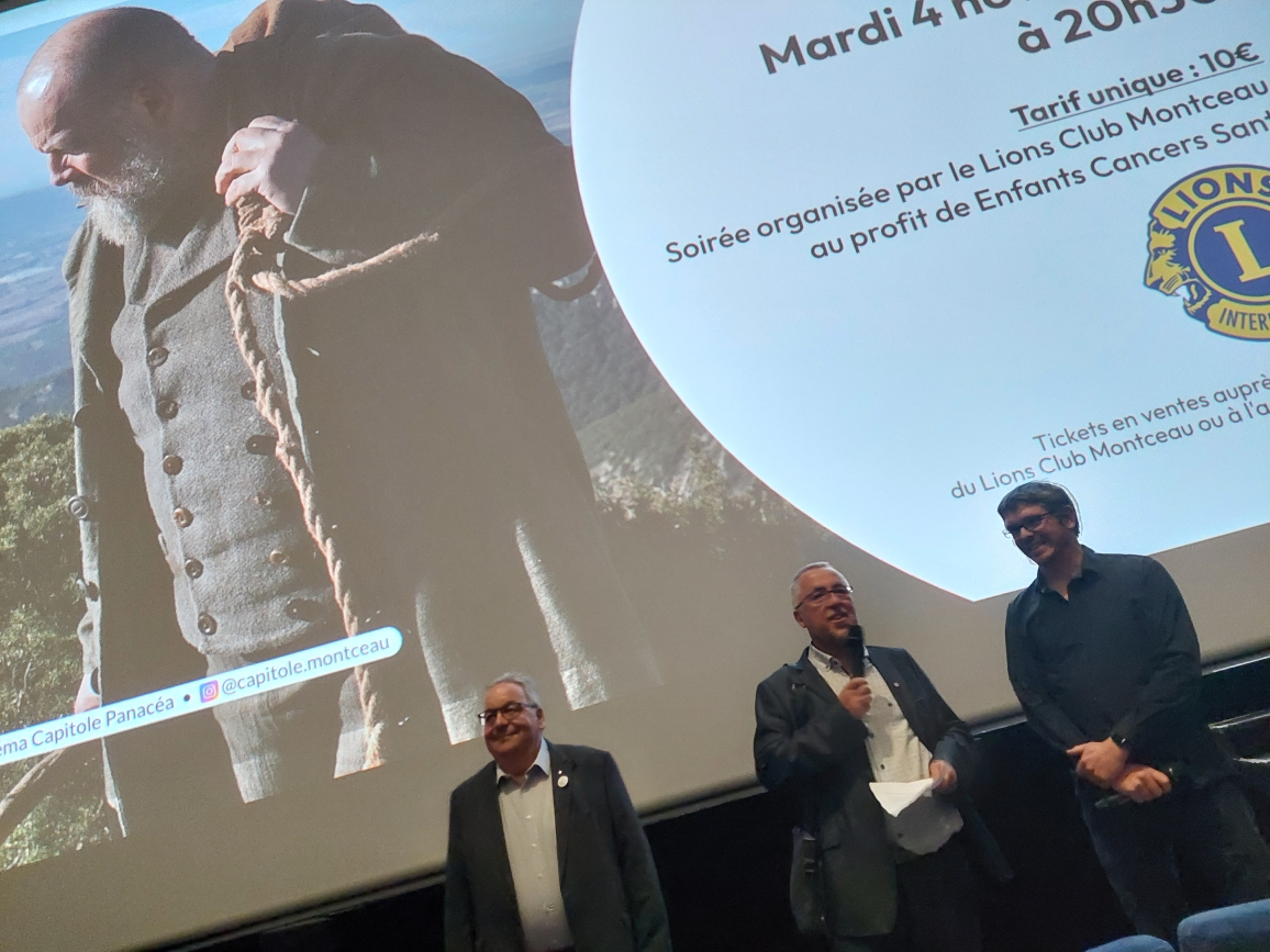 Ce mardi 4 novembre, à l’Embarcadère de Montceau-les-Mines, la plus grande salle de cinéma du département, en attendant l’ouverture prochaine du Capitole, le club a organisé une soirée caritative autour de la projection en avant-première du film Jean Valjean, qui sortira sur les écrans le 19 novembre. Pas moins de 431 spectateurs ont répondu présents pour cette belle cause, au profit de l’association « Enfants Cancers Santé », partenaire de longue date du Lions Club.