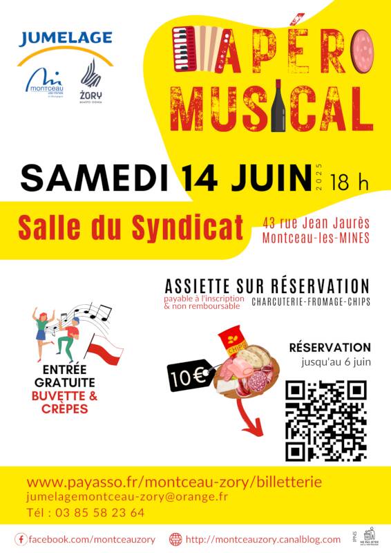 Le comité de jumelage Montceau-Zory vous donne rendez-vous samedi 14 juin 2025 à partir de 18h à la salle du Syndicat pour un apéro qui va faire vibrer vos oreilles… et vos papilles !