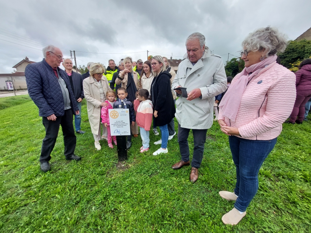 Ces arbres, une quinzaine de fruitiers, ils les ont plantés en mars dernier avec l’aide des services des espaces verts de la ville de Montceau. On y trouve pommier, figuier, poirier, prunier… grâce à la générosité du Rotary Club de Montceau avec à sa tête, le président Pierre Vernusse.
