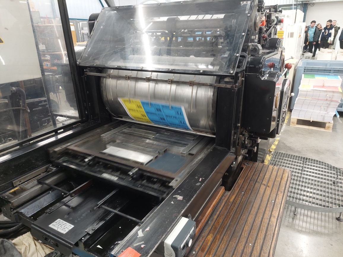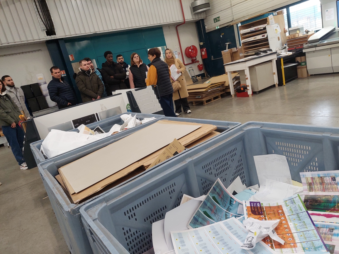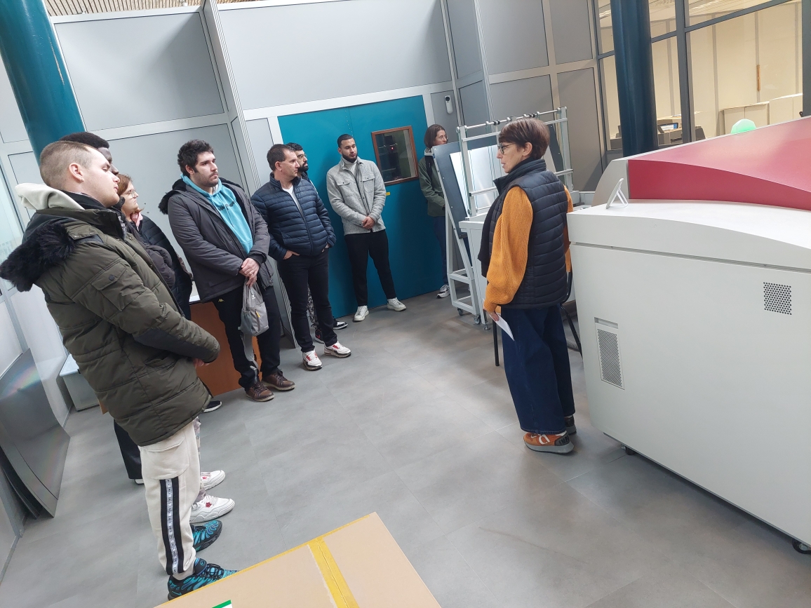 Au cours de la visite, les huit demandeurs d’emploi ont découvert les différents types d’impression, en particulier l’impression offset (la majorité du travail), le numérique et un passage par l’atelier des Clémences où sont créées des icônes religieuses.