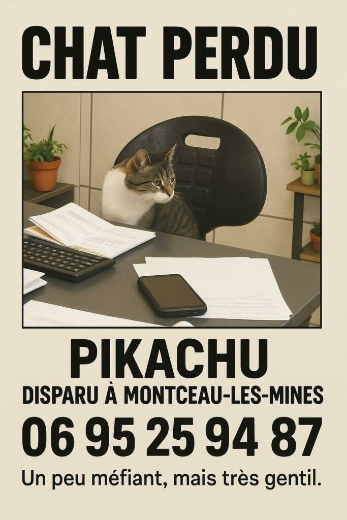 Pikachu est âgé de 4 ans, il est vacciné et tatoué. Il a disparu dans le secteur du parc Maugrand et la rue Jacques Prévert à Montceau-les-Mines.