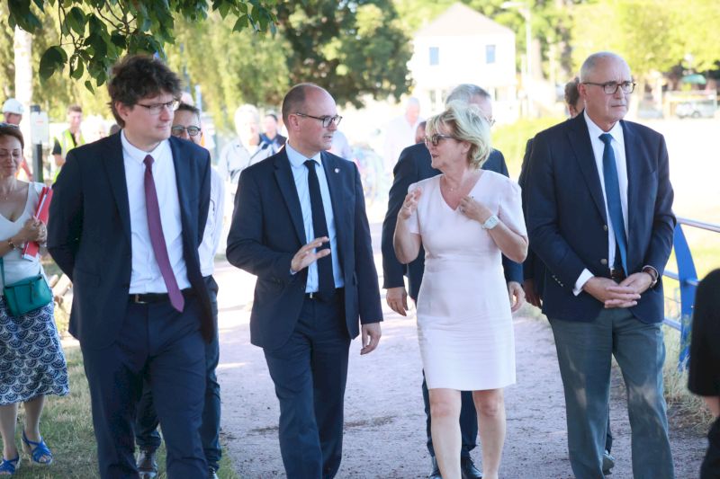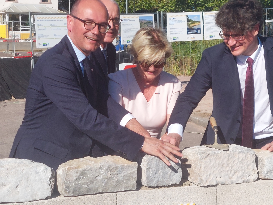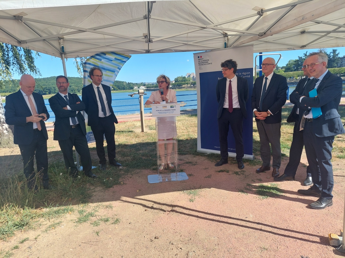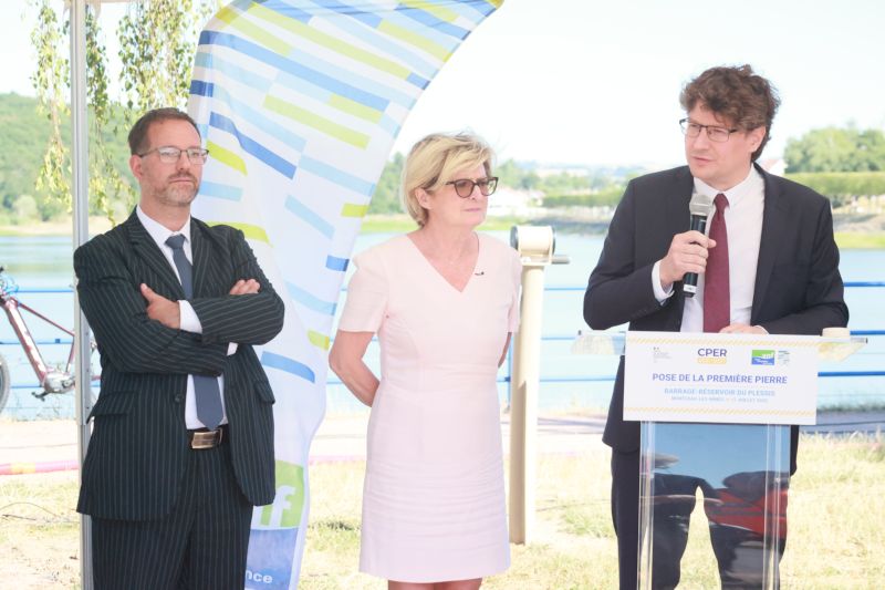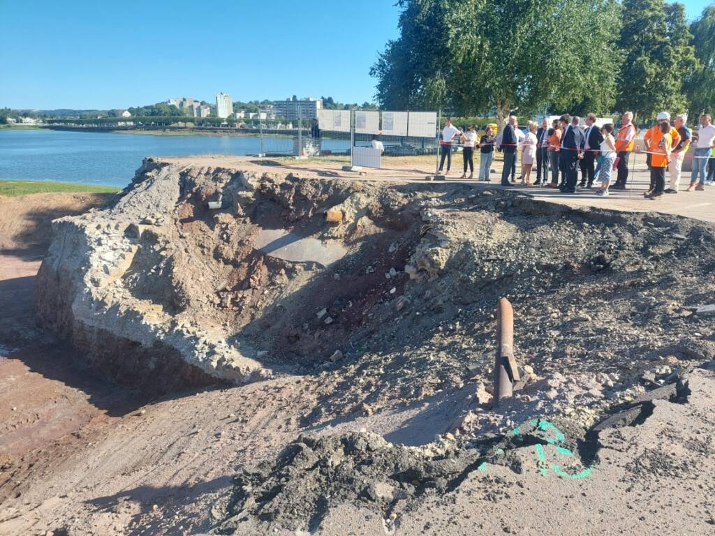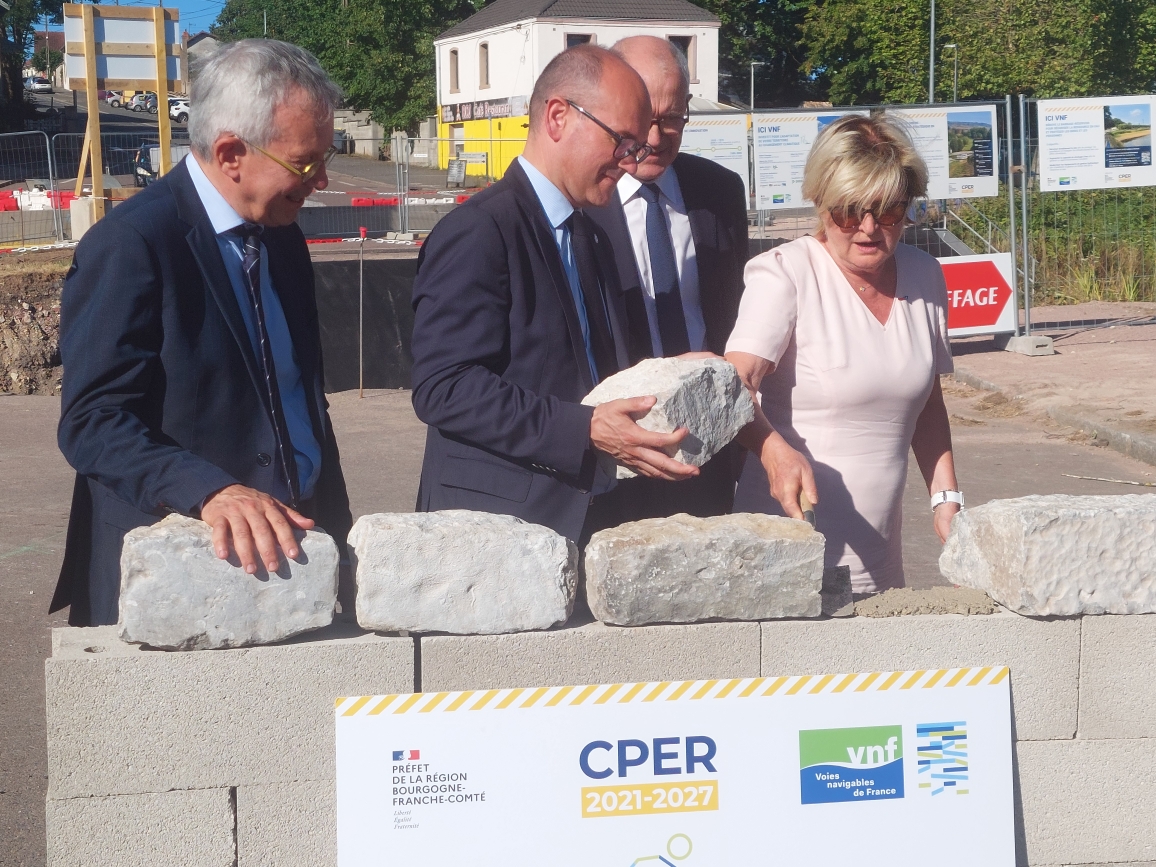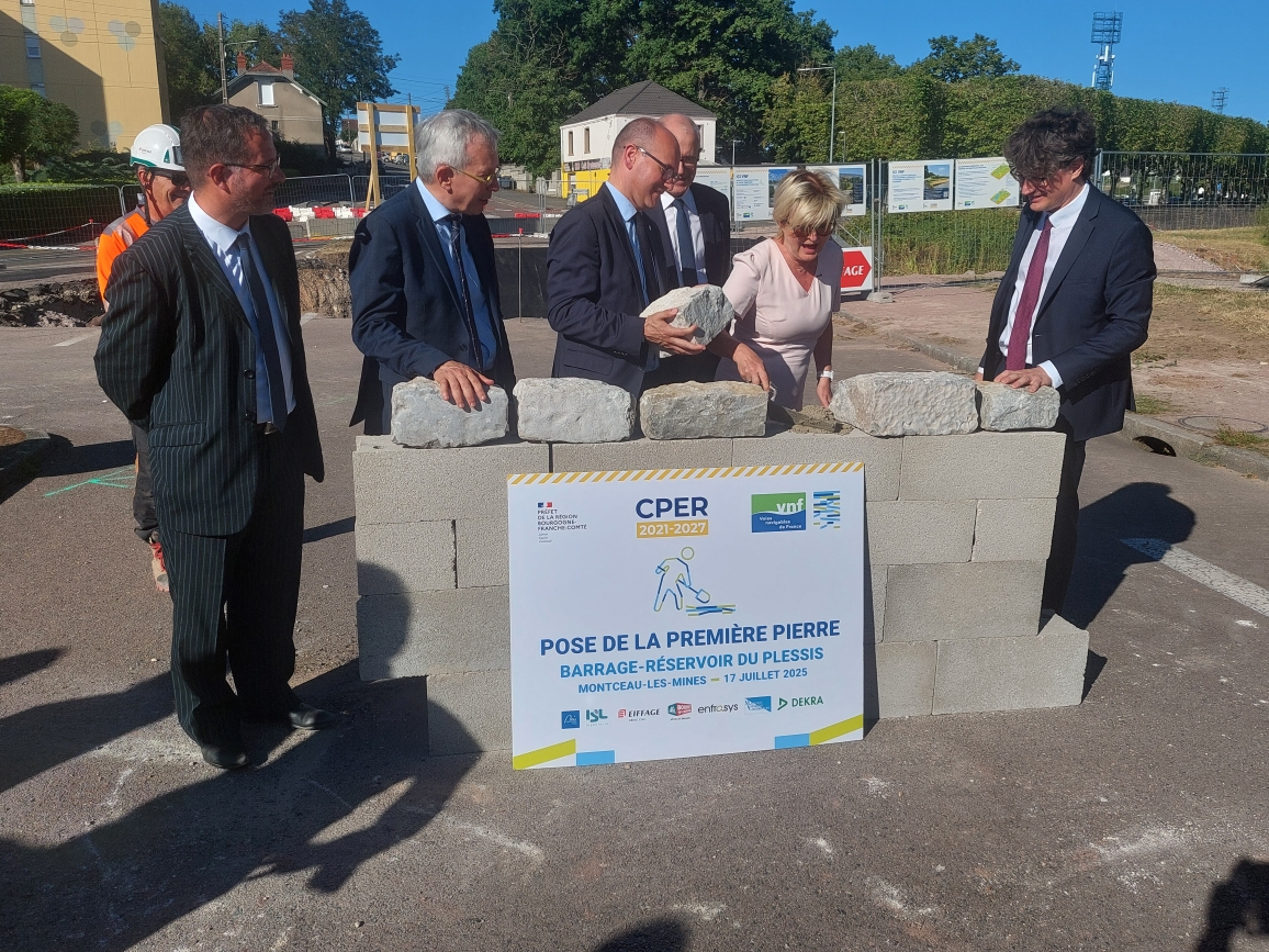 Le préfet de Région Bourgogne – Franche-Comté et de la Côte-d’Or, Paul Mourier, le préfet de Saône-et-Loire, Yves Séguy, le sous-préfet d’Autun, Jean-Baptiste Constant, le directeur général délégué de Voies Navigables de France (VNF), Thibaut Chagnas, le député Sébastien Martin et Marie-Claude Jarrot, maire de Montceau-les-Mines, réunis au bord du lac du Plessis pour la pose symbolique de la première pierre sur le chantier du barrage-réservoir, on aurait pu croire à une visite ministérielle. « Je t’assure, j’ai vu au moins une voiture de ministre » indiquait un riverain à l’un de ses amis, derrière les grillages qui protègent le chantier.