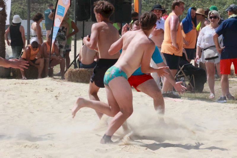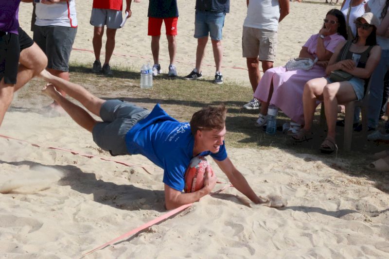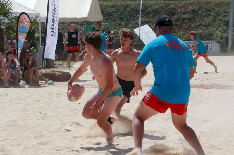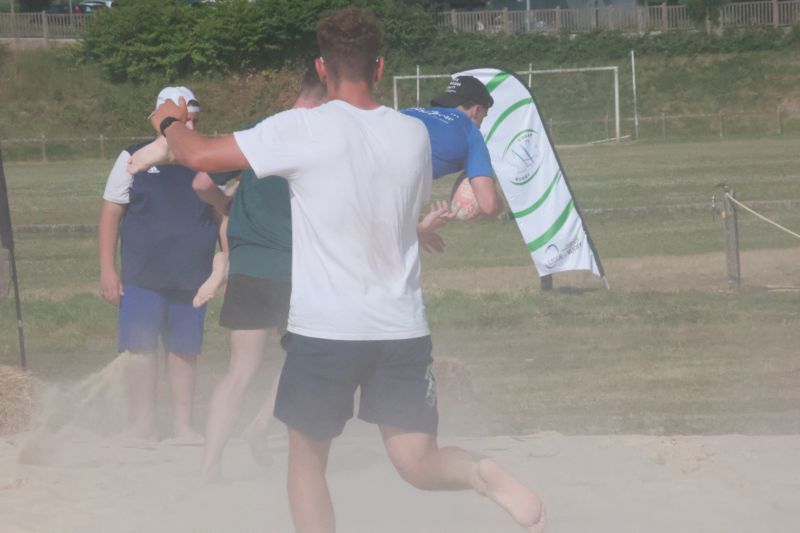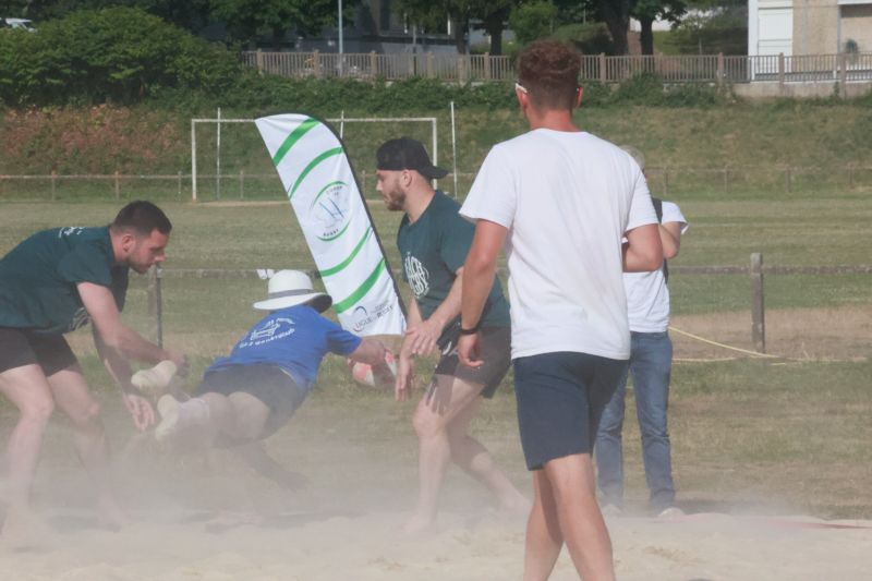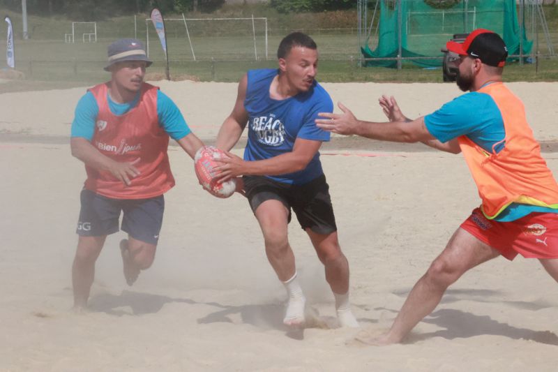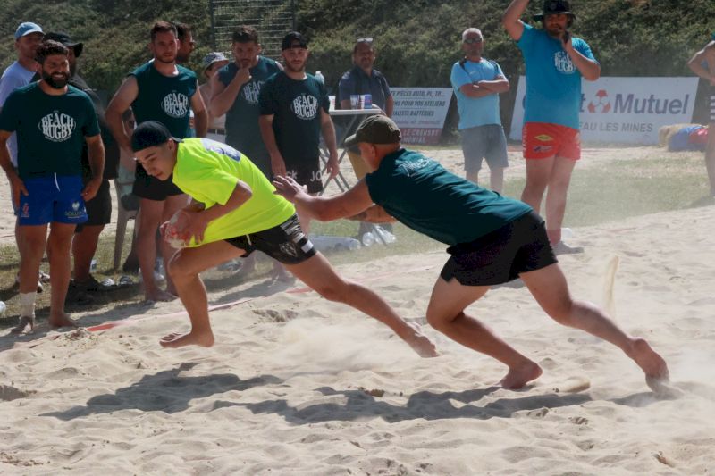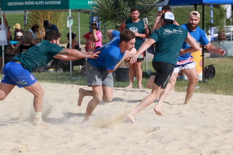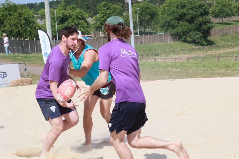 Vendredi, il faisait très chaud. Samedi, c’était pire encore, une chaleur accablante, presque mythologique. À croire que dans les cieux, le dieu égyptien Râ avait braqué tous ses rayons sur Montceau-les-Mines. Dans l’Antiquité, on ne jouait pas au rugby dans le sable du désert, on y vénérait le dieu-soleil. Mais ce samedi, ses représentants semblaient bel et bien avoir pris la forme de joueurs de beach rugby, prêts à tout pour briller sous ce soleil de plomb.