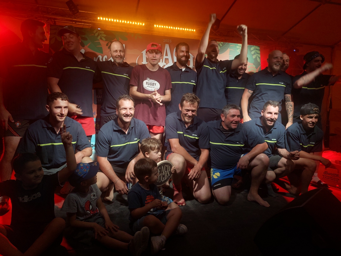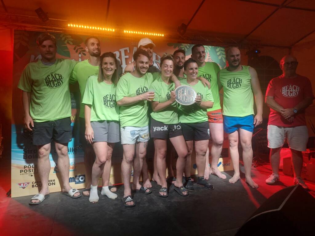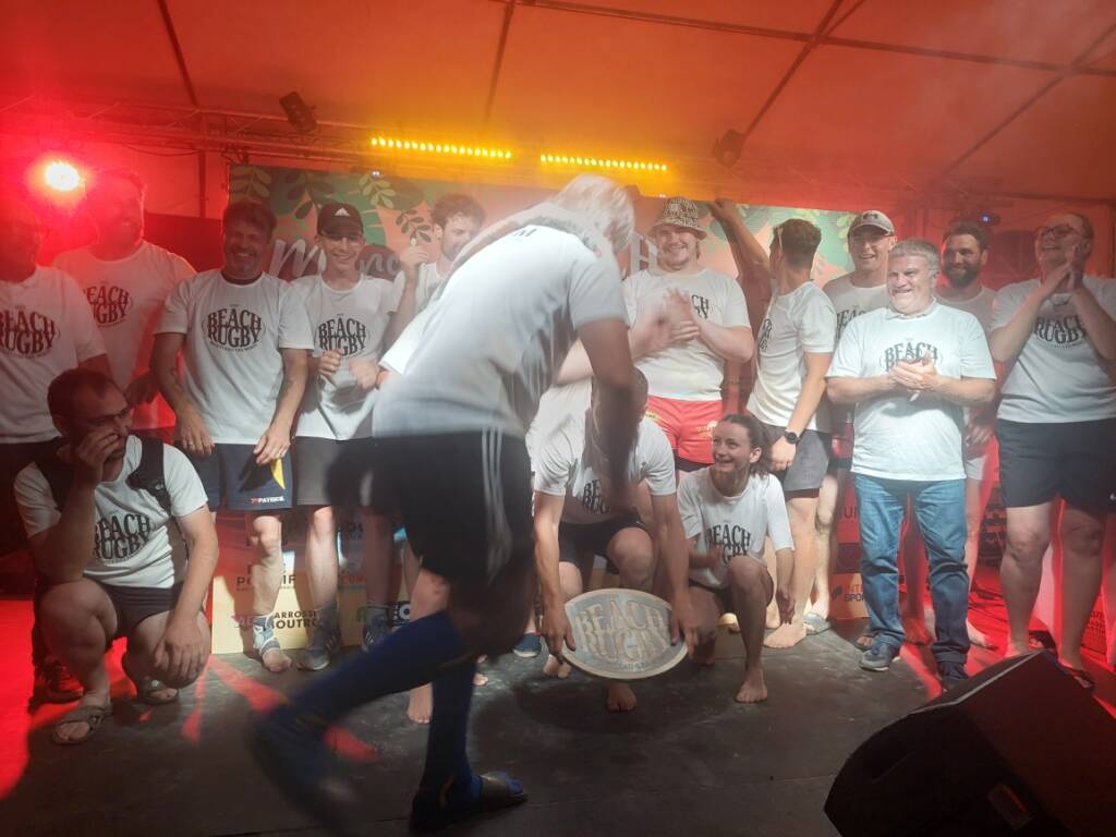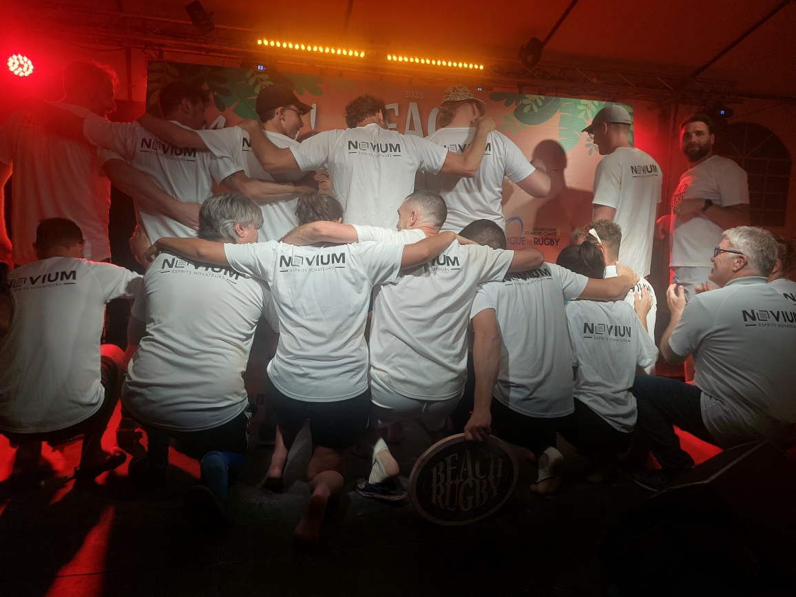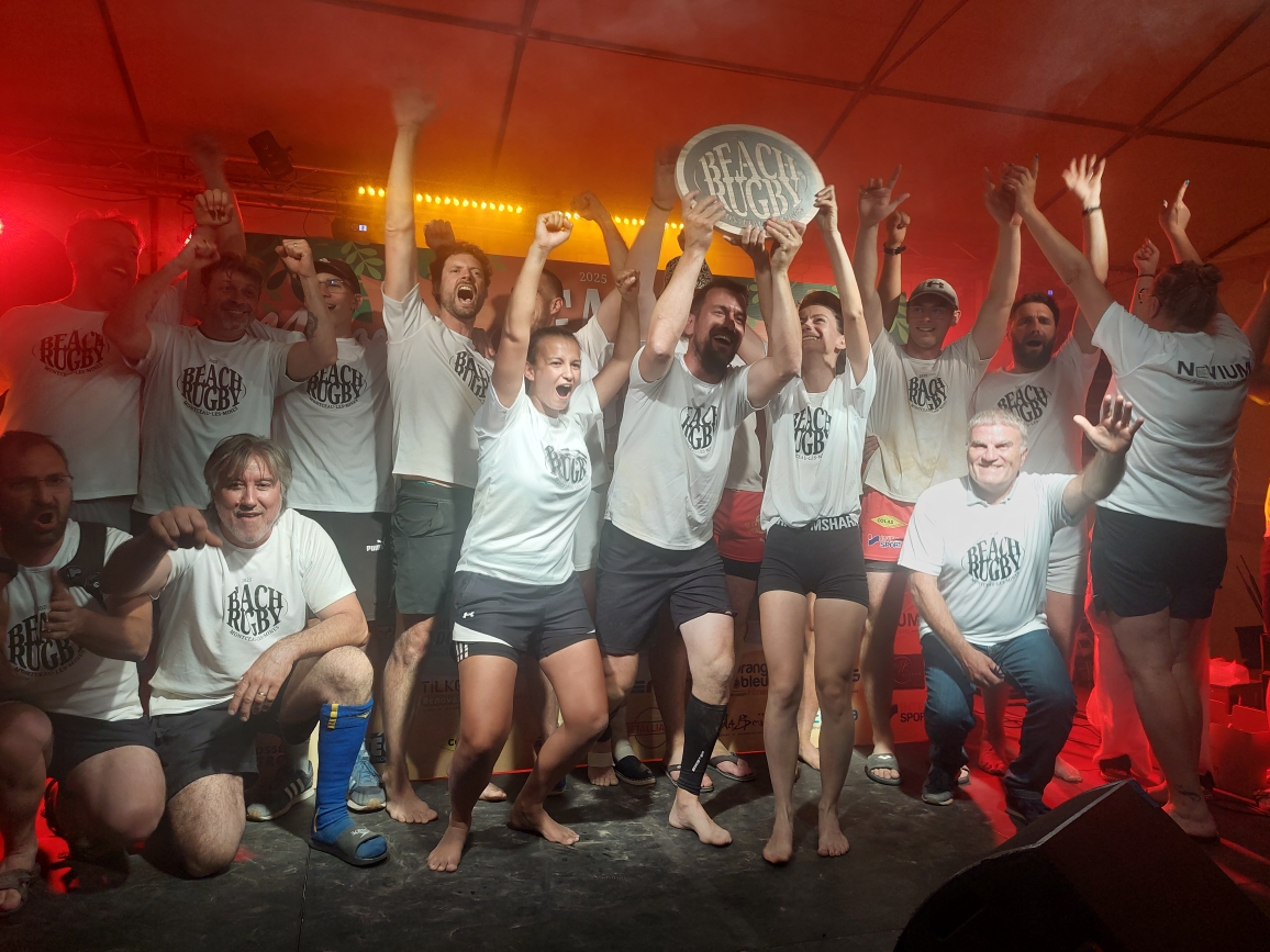 Mais le grand choc, c’était la finale entre Novium, constructeur d’engins ferroviaires (et visiblement de rêves) – et ENEDIS, distributeur d’énergie mais aussi, parfois, de bonnes glissades rugbystiques. Cette année, rien ne pouvait arrêter Novium : ni la chaleur, ni les grains de sable dans les chaussettes. Leurs 20 ans, ils les ont fêtés comme il se doit : avec un bouclier et des cris de joie sur le podium.