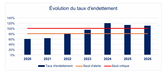 C’est bien là que réside le principal point de fragilité du budget 2026. Avec un endettement dépassant largement les seuils habituellement observés et une capacité de désendettement fortement dégradée, la situation financière de la commune suscite des inquiétudes. Le poids croissant du service de la dette réduit les marges de manœuvre et contraint fortement les choix budgétaires futurs. A cela s’ajoute un enjeu de crédibilité financière, la dégradation des ratios pouvant affecter les conditions d’accès au financement.