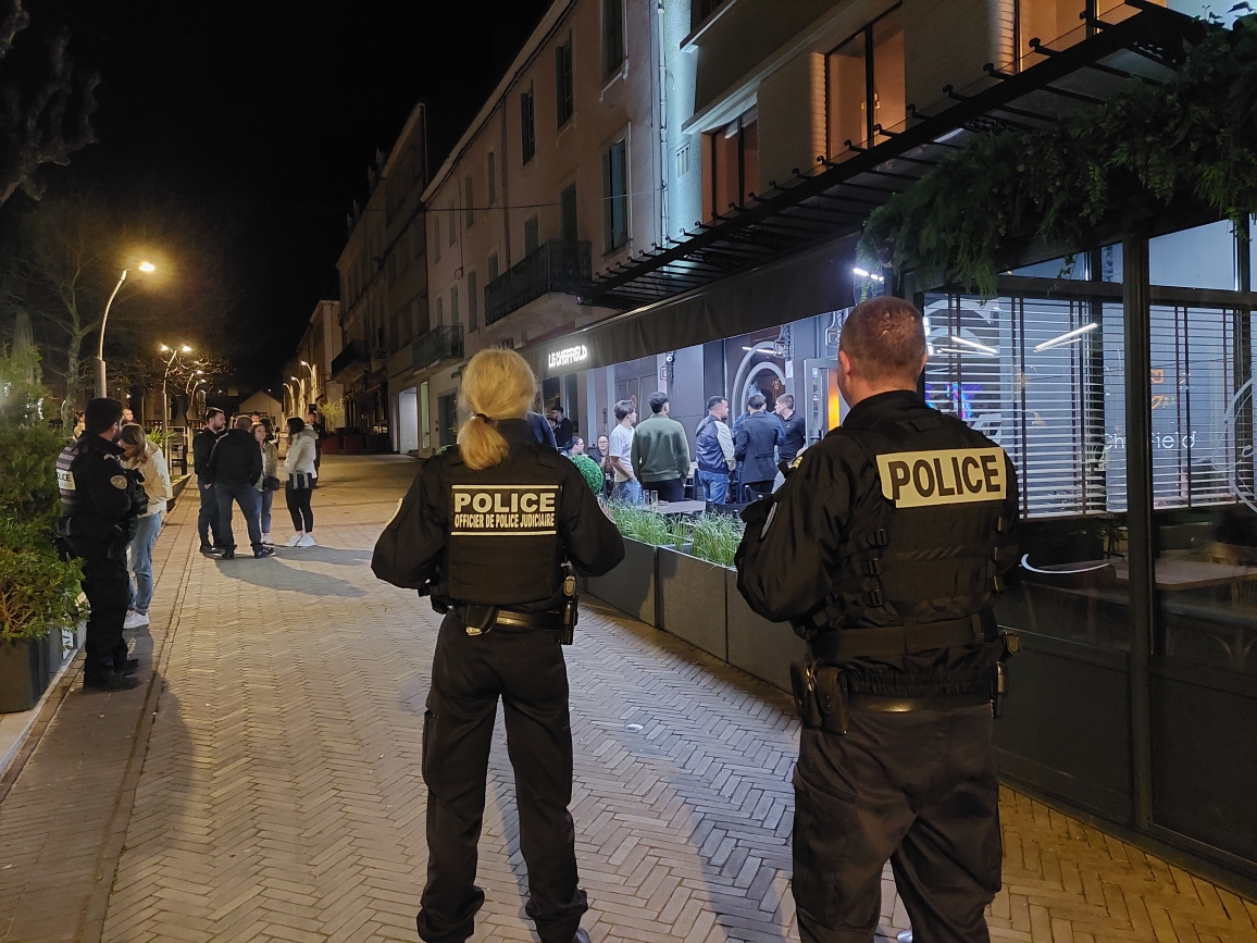 La présence de policiers, la nuit, au centre-ville de Montceau-les-Mines, fait toujours son effet. Quand, à minuit, dix-sept d’entre eux débarquent à proximité du Cheffield, en terrasse et à l’intérieur de l’établissement, les conversations baissent d’un ton et la musique s’arrête.