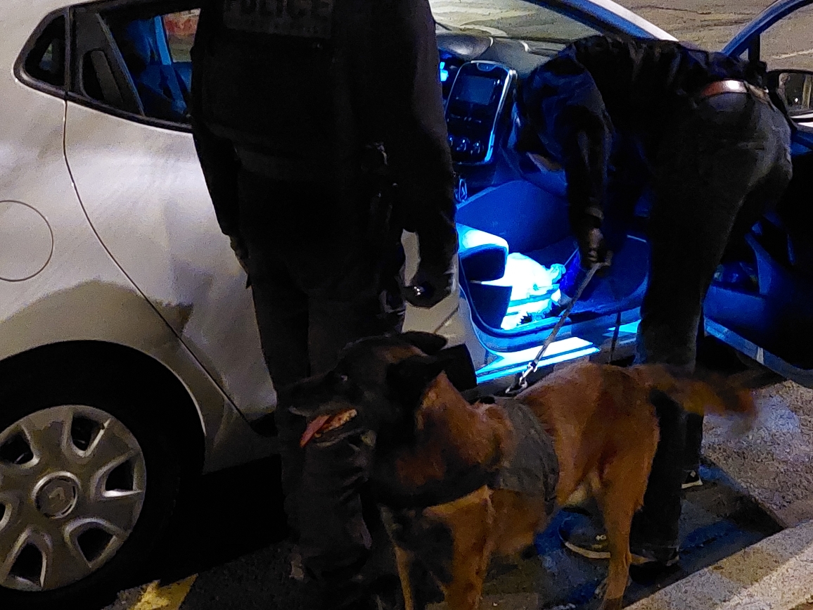 Devant la Bouquinerie, les contrôles se multiplient. Dans une Clio, quatre hommes en descendent. L’un d’eux est en possession d’un couteau (un Opinel), c’est interdit. En revanche, le chien marque à l’intérieur de la voiture Pendant de longues minutes les policiers vont chercher si de la drogue n’est pas cachée. Ils ne trouveront rien mais l’odeur est bien présente.