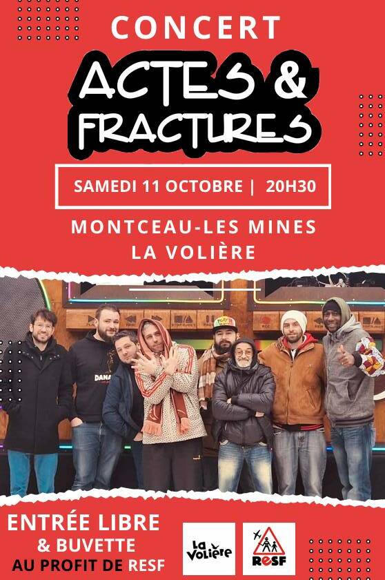 Samedi 11 octobre à 20h30 à la Volière, concert d Actes et fractures, au profit de resf et de la Volière.