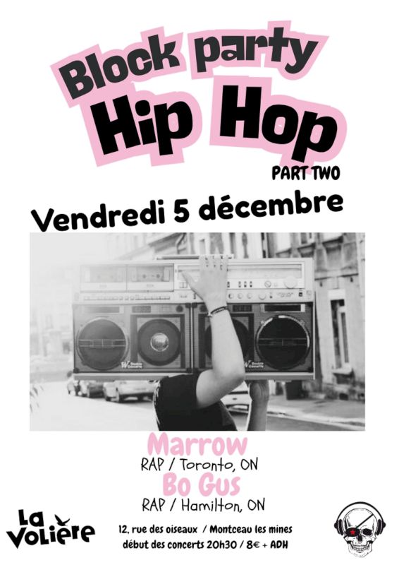 La deuxième étape de la Block party de La Volière à Montceau-les-Mines, ça se passe le vendredi 5 décembre et on vous a préparé du lourd car ce ne sera rien de moins que deux rappeurs nord-américains qui viendront faire chauffer la scène de La Volière !!
