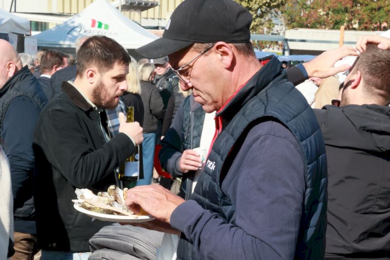 Au menu de cette matinée gourmande, les inévitables grattons, bien sûr _ ces morceaux de porc grillés croustillants à souhait _ mais aussi huîtres fraîches, escargots persillés, pâtes à la truffe, frites dorées, effiloché de porc fondant… le tout accompagné d’un nectar délicat issu de grappes de raisin blanc, pour sublimer chaque bouchée.