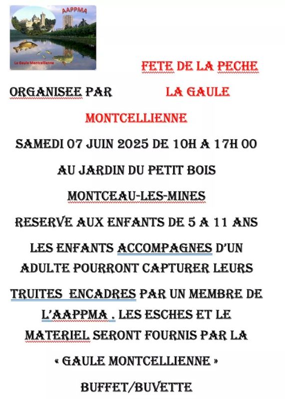 Comme chaque année, des truites seront déversées dans le bassin du jardin du Petit Bois, rue de Chalon à Montceau, pour le plus grand plaisir des enfants lors de cette fête de la pêche le samedi 7 juin 2025.