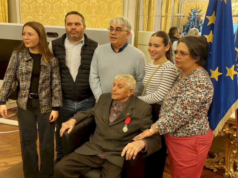 « Ma beauté, te voilà chevalier de la Légion d’honneur dans une ville de Montceau qui est médaillée de la Résistance. Tu fais encore plus briller notre ville » exprimait avec délice, Marie-Claude Jarrot pour cet homme d’exception, devenu une figure montcellienne, au regard et à l’esprit vifs. C’était en décembre 2024 à la préfecture de Saône-et-Loire.