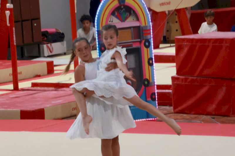 Il suffisait imaginer glisser une pièce dans un vieux jukebox pour que surgisse un univers, une époque, une émotion. Et sur chaque rythme, les montceaugymnastes prenaient vie, tourbillonnaient, s’élançaient, dansaient entre ciel et tapis avec une grâce électrique.