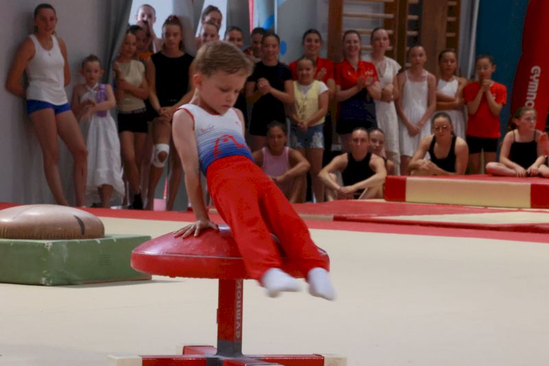 La chaleur, lourde et oppressante, semblait vouloir ralentir le temps. Mais les gymnastes, pareils à des notes légères portées par le vent, ont défié l’atmosphère suffocante pour offrir un spectacle d’une rare intensité. Corps tendus, gestes précis, regards habités… chaque passage était une mélodie incarnée.