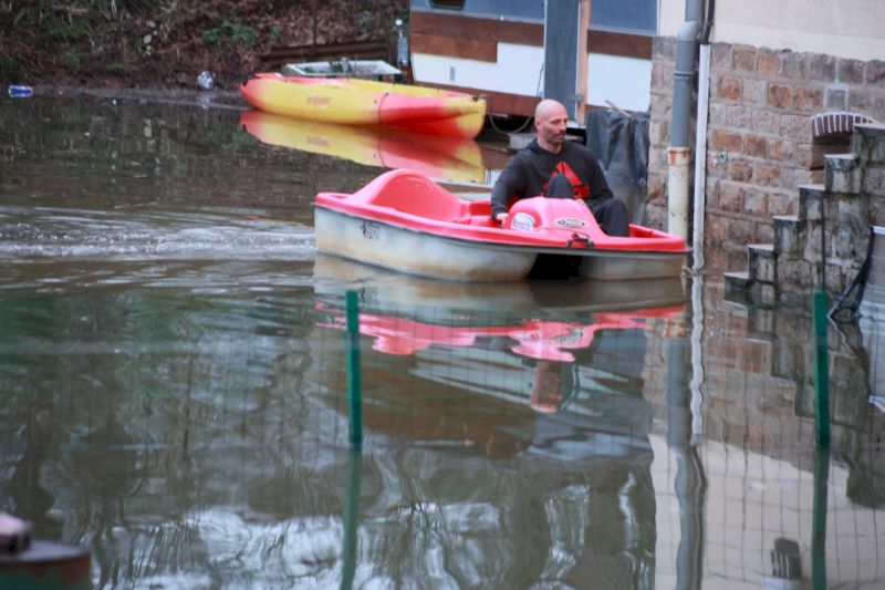 Avec les fortes pluies de ces derniers jours, la Bourbince est sortie de son lit et a envahi ce vendredi matin, le quartier des Equipages et les jardins des habitations situées notamment rue des Bains à la Sablière. Les services techniques ont mis à disposition des habitants un canoë, un pédalo ou encore une barque pour leur permettre de sortir de chez eux.